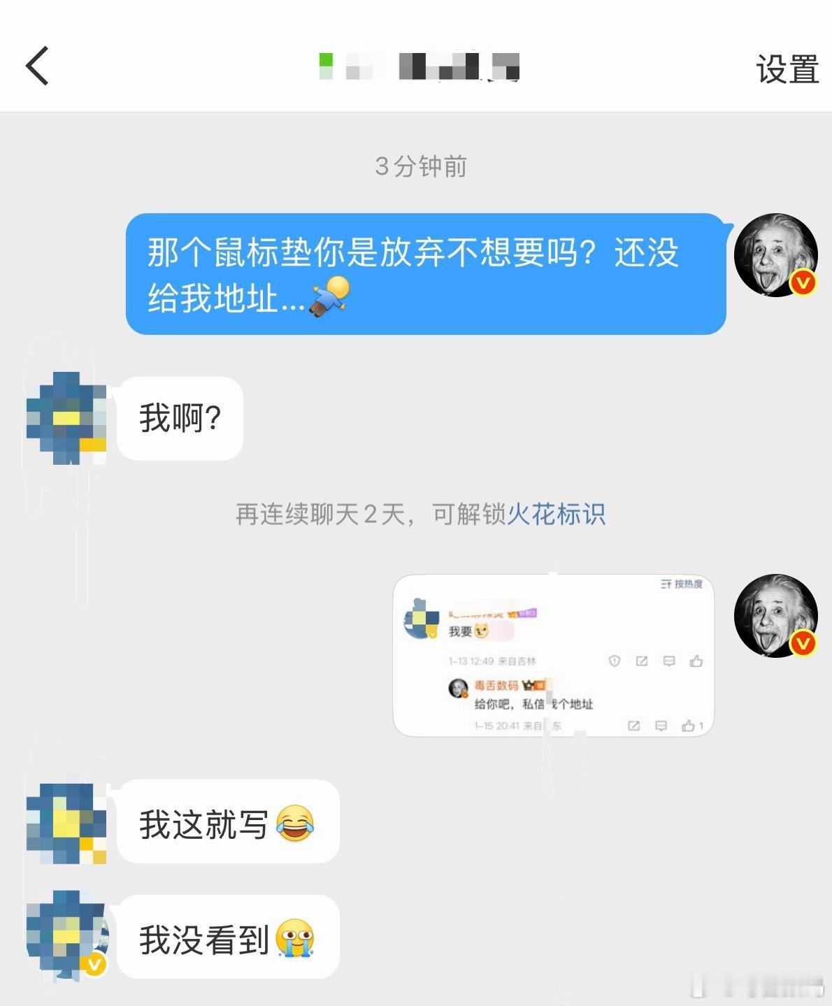 真是为粉丝操碎了心…之前有个大号鼠标垫,一个钻粉他说他想要,也经常在我这互动,就给他了。让他私信我地址,我一看怎么到现在还没给我地址。我就去提醒了他一下,果然…