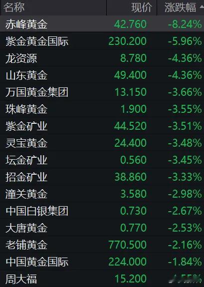 今日金价 港股有色金属板块全线飘绿,黄金暴跌风险如期而至!今早香港恒生指数开盘跌0.65%,恒生科技指数跌0.88%。有色金属板块全线飘绿,赤峰黄金跌超8%,紫金黄金国际跌超5%,山东黄金跌超4%,珠峰黄金、灵宝黄金、招金矿业等跌超3%。贵金属是期货闪崩、美联储偏鹰及高位获利盘出逃共振导致。科网股集体走低,快手跌超2%,阿里巴巴跌近2%,中芯国际、百度集团、小米集团、腾讯控股等跌超1%,京东集团、小鹏汽车等全走低。科网股走低整体是源于微软财报暴雷、美股科技股的情绪传导……黄金跳水可以上车了吗