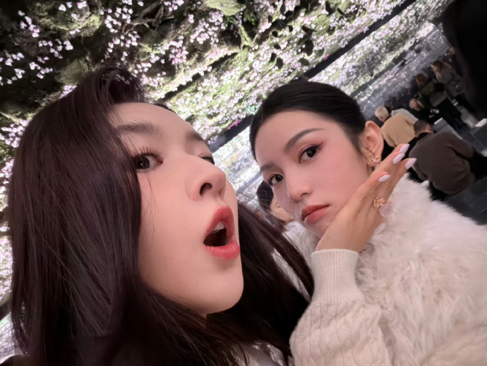 王玉雯周也搞怪合照太可爱了,原来美女都喜欢贴贴吗?