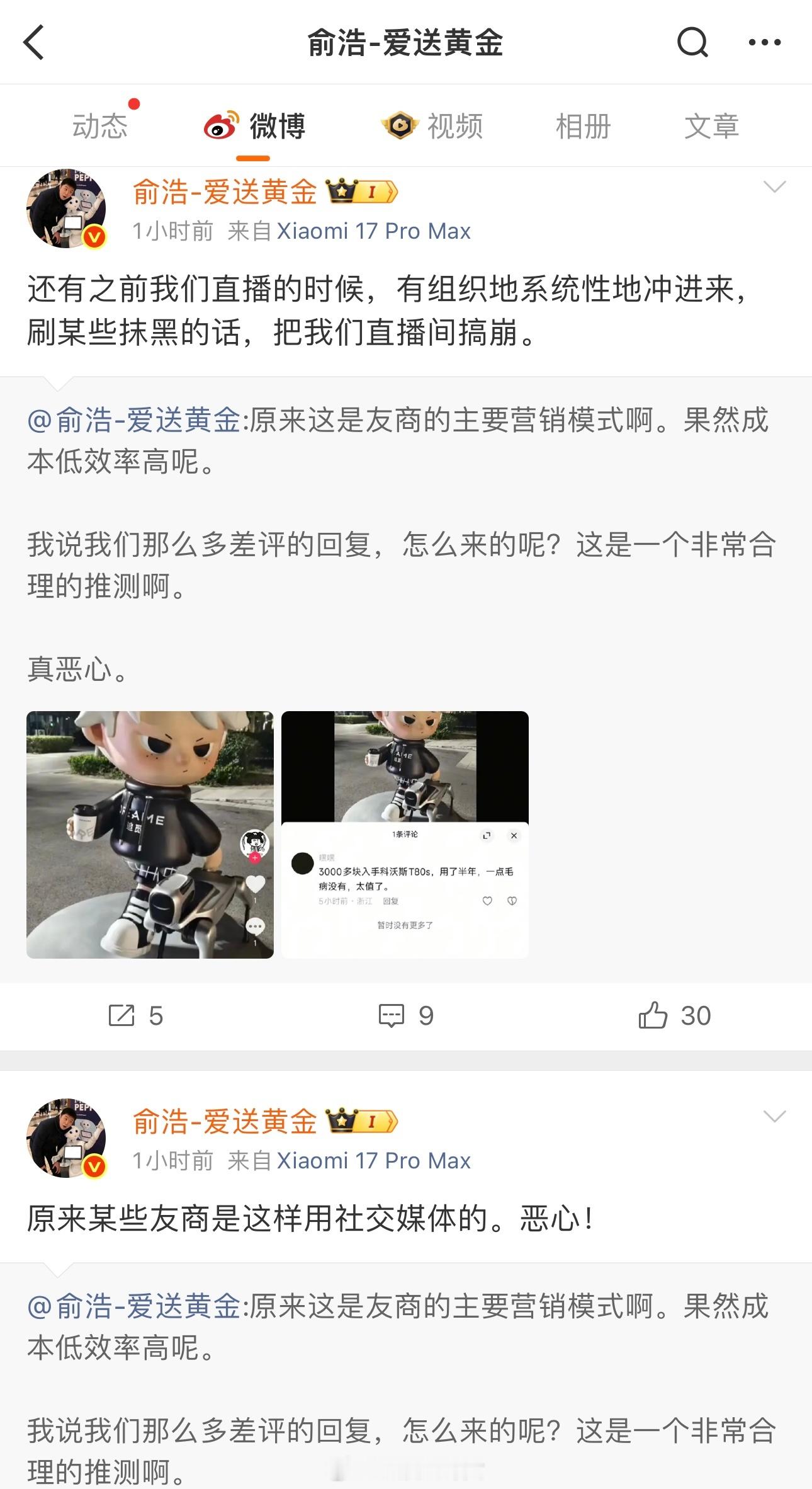 追觅CEO俞浩连发6条博文怒怼科沃斯,称其大量购买水军