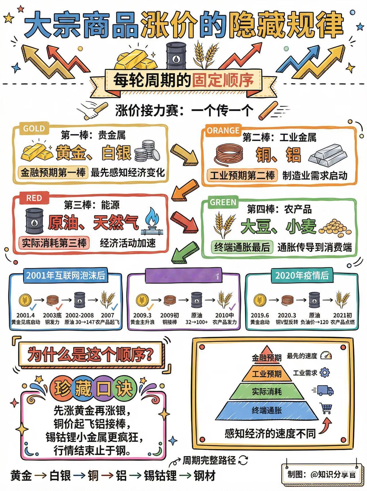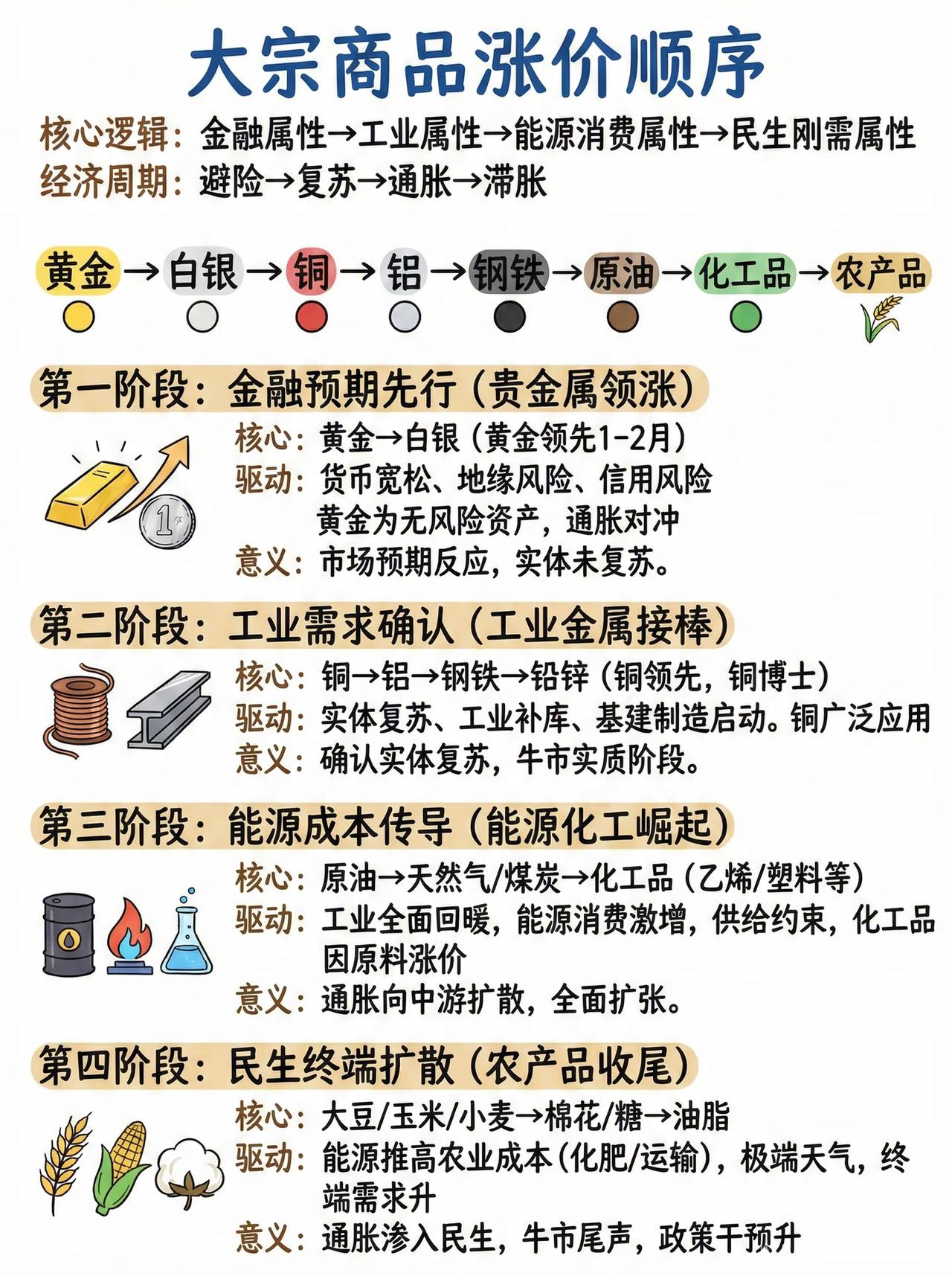 大宗商品涨价顺序 金先动,银跟上,铜确认,油引爆,农收尾!