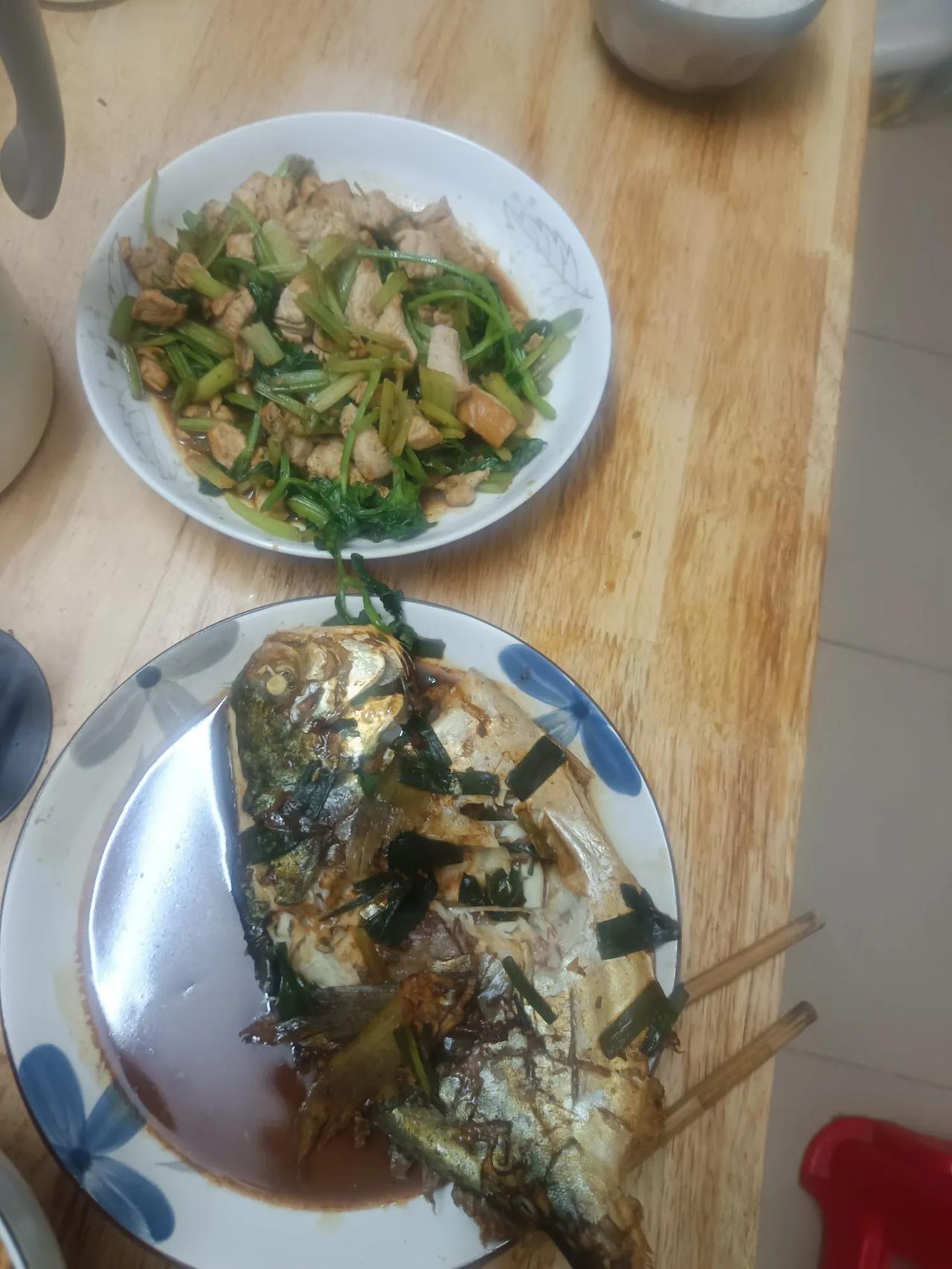 中午我炒了三个菜,发挥不好,味道不怎么好吃,,[捂脸][捂脸][捂脸] 厨艺欠佳,刀功也不好,有很大提升空间,,[捂脸][捂脸]