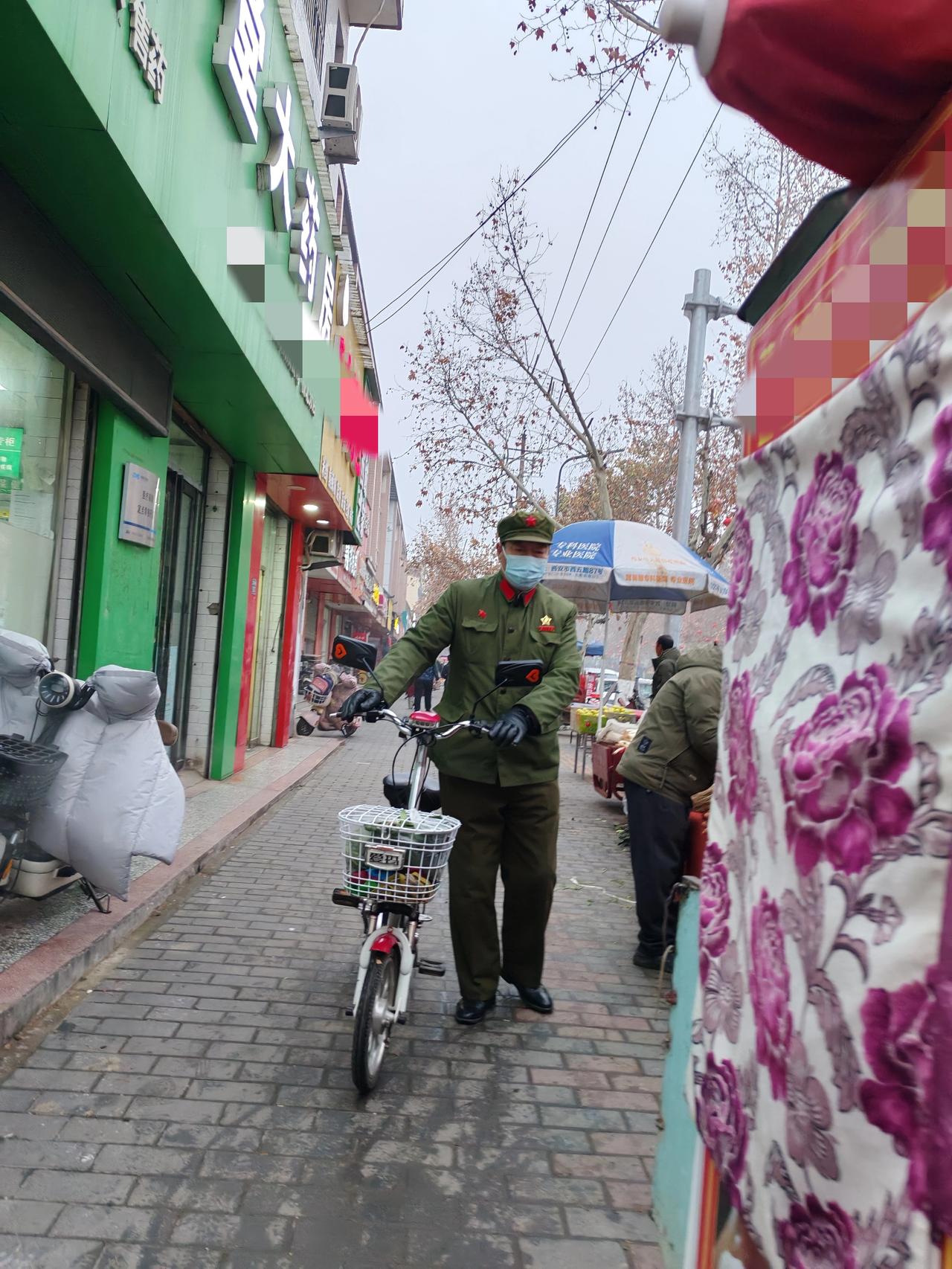 老年人的迷惑行为 1月30日,坐标西安。早上我在药店门口看到一个英姿飒爽的大叔,在雨雾朦胧的冬日早晨,这个大叔很吸睛。 他推着一辆自行车,吸引我的是他那一身衣服,草绿色的军式制服和帽子,脚蹬黑色皮鞋,戴着口罩,脊背挺拔,看着精气神十足,还是蛮有气质的。 大叔的衣服上有红色的领章,头上戴的帽子上还有红五角星,这个属于制服还是军装呢,我不太懂这些。 我猜想大叔可能是一个退伍的老兵,他怀念曾经的军旅生涯,那是他火热的青春,所以至今喜欢这种衣服,这是一种情怀和青春符号。 但我有一个疑惑,按我的理解,如果是军装,应该是不让随便穿的吧,只有军人才能穿,但我在街头发现经常能见到穿军装的老年人,他们这一类的衣服可以随便穿吗?谁知道,说说看。