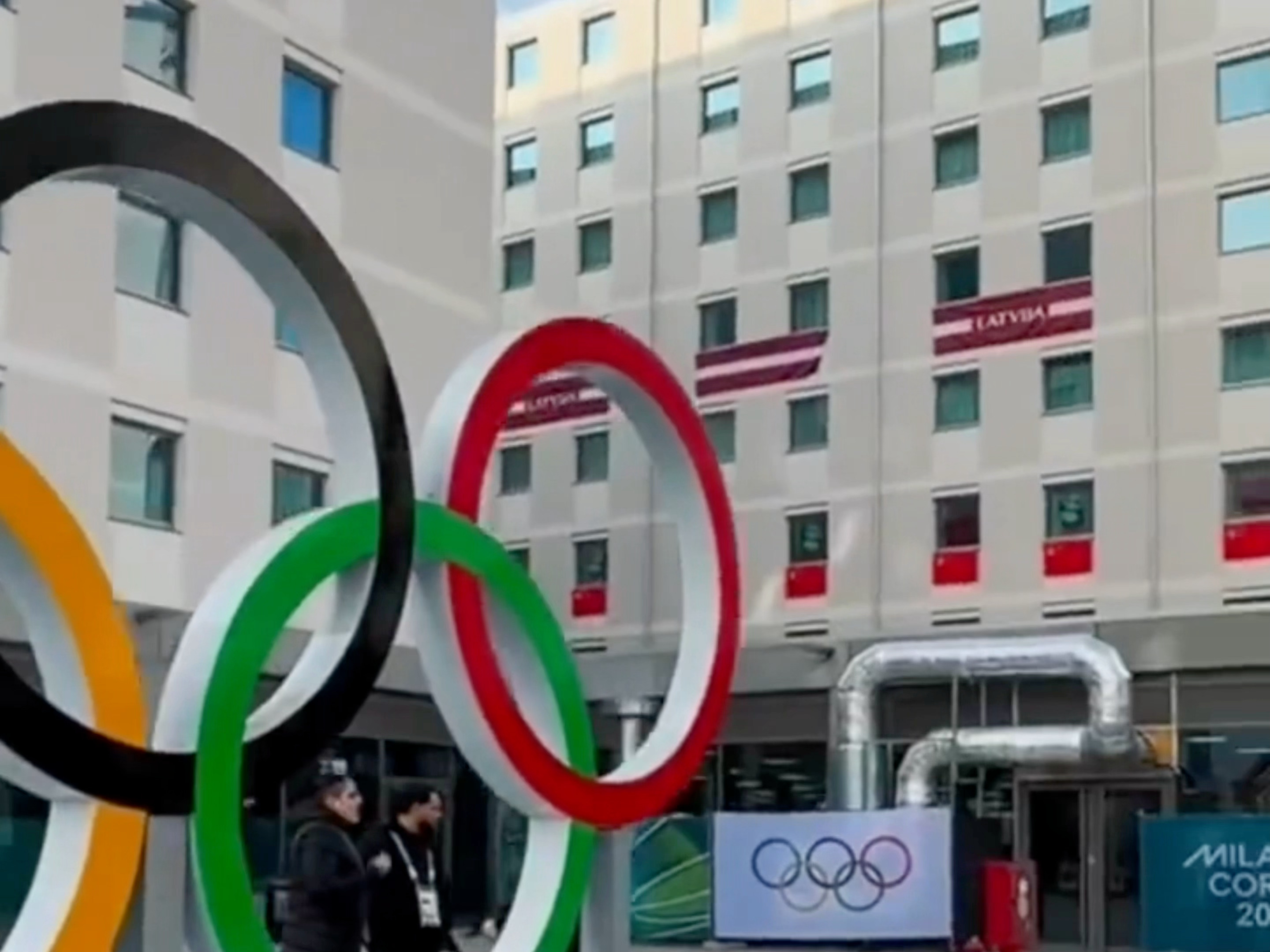 米兰冬奥村挂起五星红旗一起给运动健儿们加油🇨🇳🐼中国大熊猫亮相米兰冬奥村
