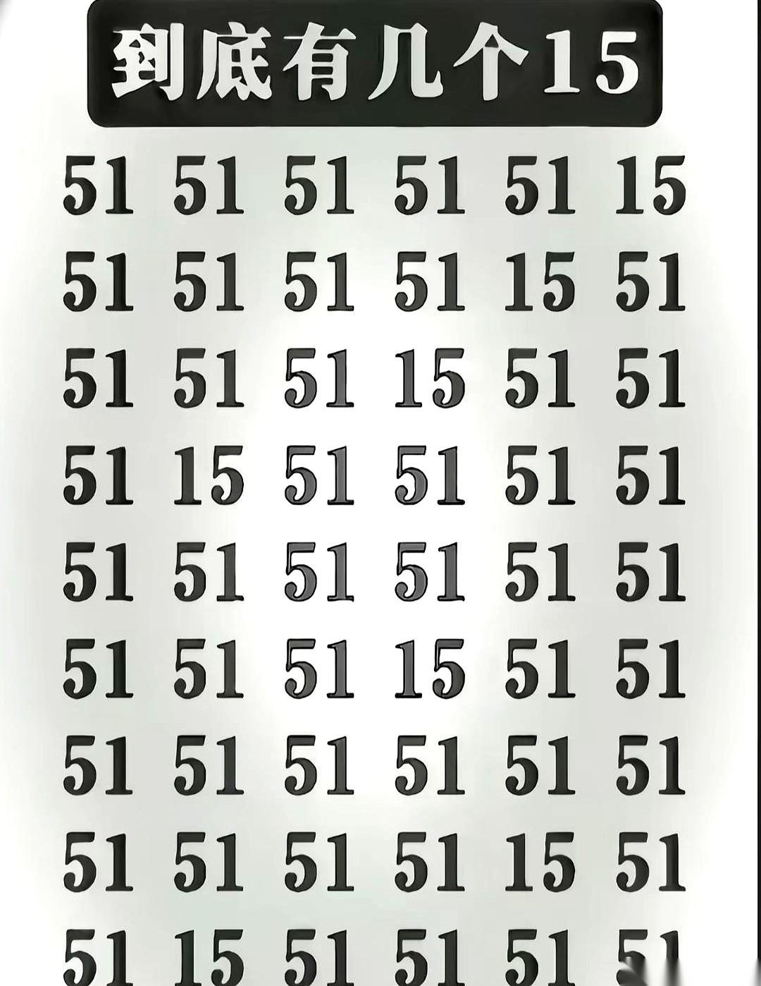 那张铺天盖地的“找15”的图,我跟你说,压根就不是考验眼力。 这就是个人性测试器,一个社交圈的“小圈套”。 你以为它在问你“有几个?”,其实它在筛选人。 第一层人,看一眼,觉得无聊,划走了。恭喜你,时间管理大师。 第二层人,兴致勃勃,趴在那找了半天,找到七八个,心满意足地觉得自己挺厉害。这种人,活得简单,也容易快乐。 第三层人,就是我们大部分人。自己找完了,非得去评论区对答案。结果一看,好家伙,版本多得跟神仙打架一样,有人说15个,有人说21个,还有人说他找到了40个…… 瞬间,好胜心就上来了。 “凭什么?我怎么就没看着?” 然后就不服气,把手机怼到眼前,放大,缩小,恨不得把屏幕像素点都给数一遍。最后眼睛都花了,颈椎都僵了,找出来的数还是跟“大神”们对不上。 这时候你才回过味儿来。 这玩意儿的正确答案,从来就不是那个数字。 正确答案是:它成功让你花了半小时,让你产生了自我怀疑,让你忍不住在评论区打下一行字,让你跟陌生人争得面红耳赤。 你看,你的时间、你的情绪、你的好胜心……全都被这张破图精准地拿捏了。 所以,别较劲了。 你我这种老老实实趴在那数数的,都是最可爱的“笨蛋”。