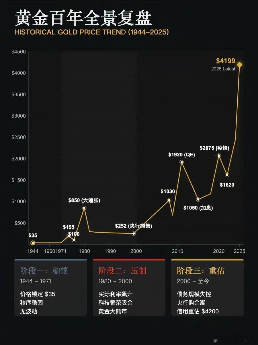 今日金价黄金其实并没有涨,是我们手里的纸币正在回归它原本的价值!黄金百年全景复盘,1944年到现在分三个阶段,枷锁期、压制期、重估期……有色黄金价格暴跌原因黄金跳水可以上车了吗黄金暴跌