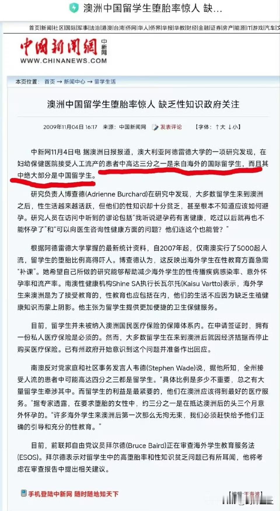 2009年官方就有了报道,留学生一出国,性生活就大大增加,堕胎的人群中1/3都是留学生,其中大部分是中国留学生。
