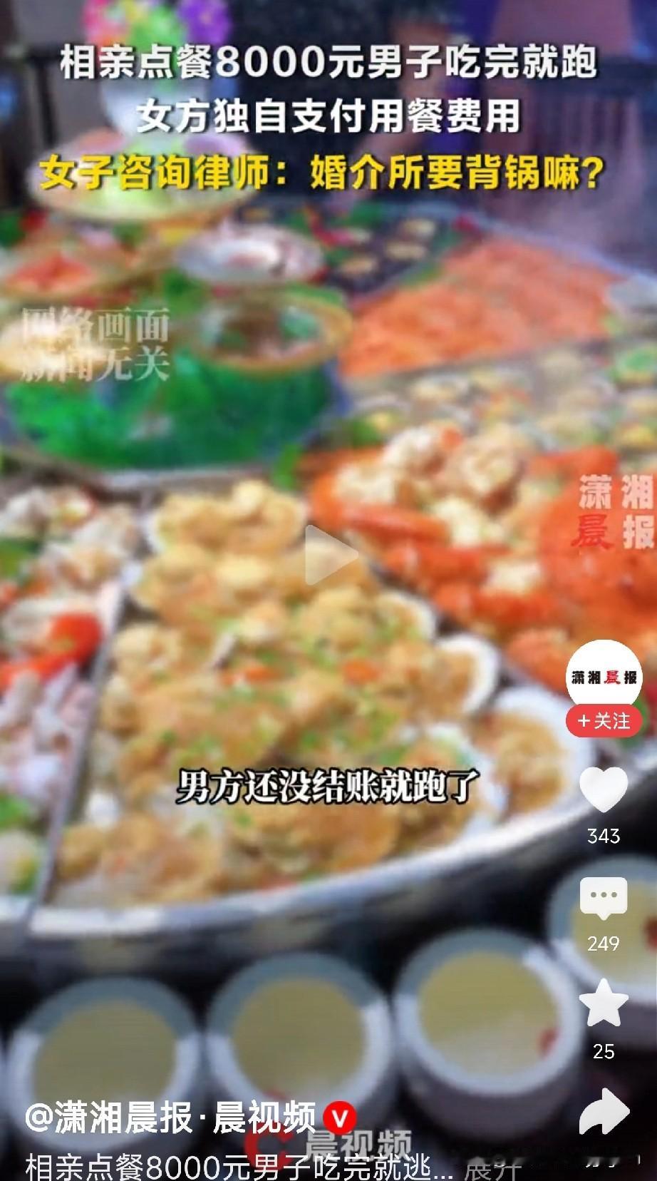 相亲点餐8000元男子吃完就跑? 女生通过婚介所认识了王先生,两人约在高档餐厅见面。结果点餐时直接突破天际:帝王蟹、和牛、拉菲红酒……账单直接飙到8000元! 吃到一半,男方突然说去厕所,然后——消失得比窜天猴还快!电话拉黑、微信不回,女方欲哭无泪,只能自己掏钱。 现在问题来了:这8000块该谁付? 如果是男方主动点的:你装大款请客,结果吃完跑单?这操作简直把“渣男”二字刻脑门上了!法律上这叫“逃避债务”,女方完全有权追责! 如果是女方点的:姐们,初次见面就点8000元,是考验男方财力还是想宰人?男方跑单虽不地道,但你这消费水平也够呛啊…… 如果两人一起点的:都照死里点,那就是周瑜打黄盖——一个愿打一个愿挨!但吃完就跑,男方属实玩不起。 婚介所基本不背锅! 律师表示:婚介所只负责牵线,核实身份信息。除非他们能证明婚介所和男方串通诈骗,否则这钱该找男方要!女方想追回钱,得靠报警或起诉男方。 网友神评论亮了: “女的也不简单,第一次见面就点8000,当男方是ATM吗?” “男方跑单确实渣,但女的这消费水平,换我也不想当冤大头!” “建议相亲直接AA,别整这些虚的!谁点的谁付钱,公平!” 说句大实话: 相亲不是“财力测试”,更不是“宰人现场”!初次见面选个普通餐厅,AA或男方请个正常餐,既能体现风度又不肉疼。 真想考验对方,多聊聊人品、三观,比吃8000块靠谱多了!最后提醒:遇到天价账单留个心眼,别让自己当冤种! 朋友们,你们觉得这钱该谁付? (文章素材来自潇湘晨报.晨视频,侵删)