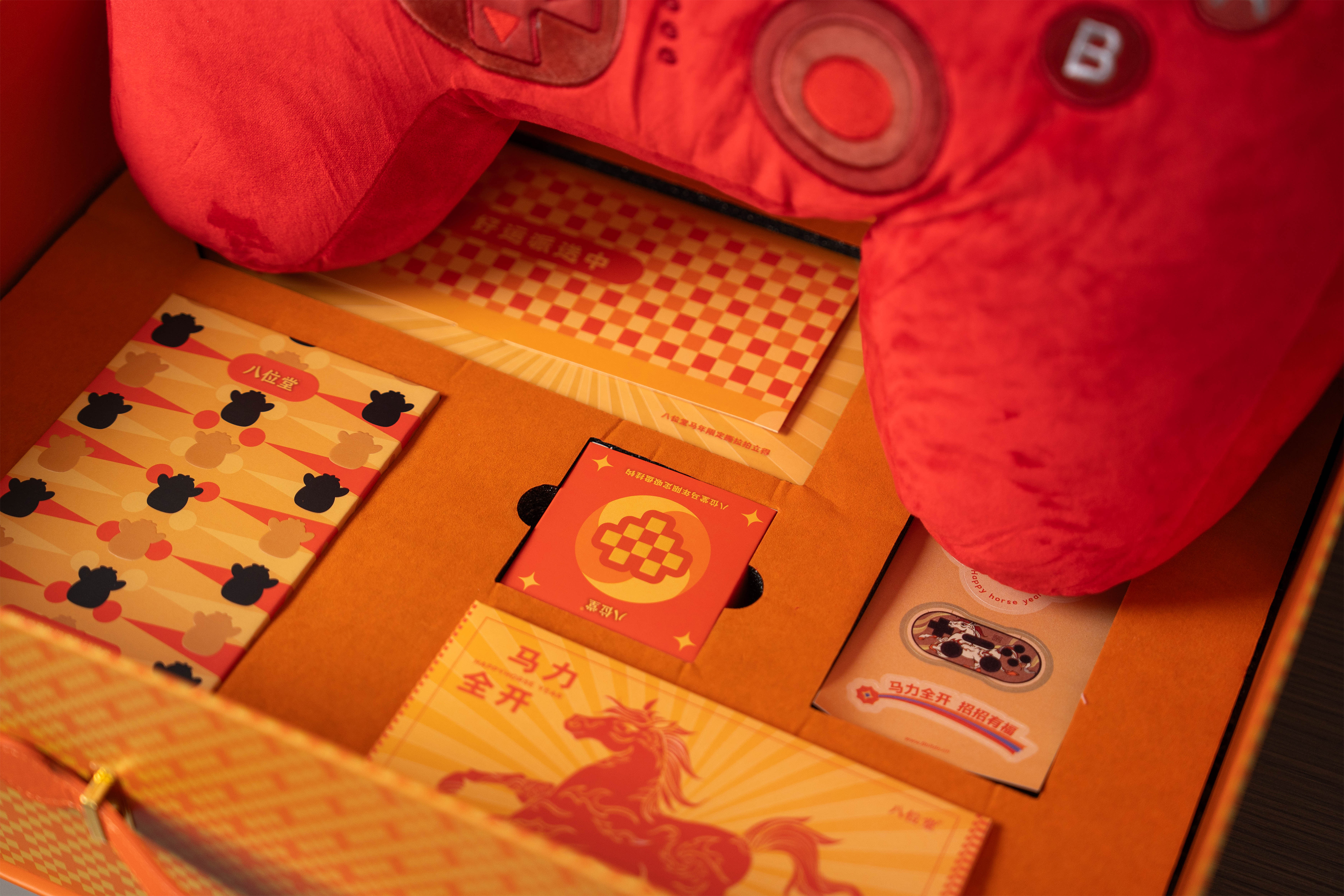 八位堂马年抱福礼盒,寓意非常好,而且礼盒的小礼物也很有特色。我尤其好喜欢里面这个手柄形状的抱枕啊,现在坐客厅追剧玩游戏,都会抱着它。太舒服了。最后也祝大家新年快乐!马到成功,好运连连!🎉