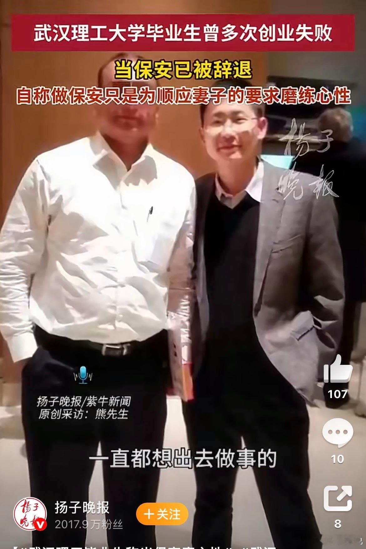 武汉理工毕业生承认借保安身份引流熊先生向记者透露,这位当年的辅导员说当保安并不是有职业歧视,而是考虑到他有两个孩子和家庭要养,做保安的工资是否能够支撑