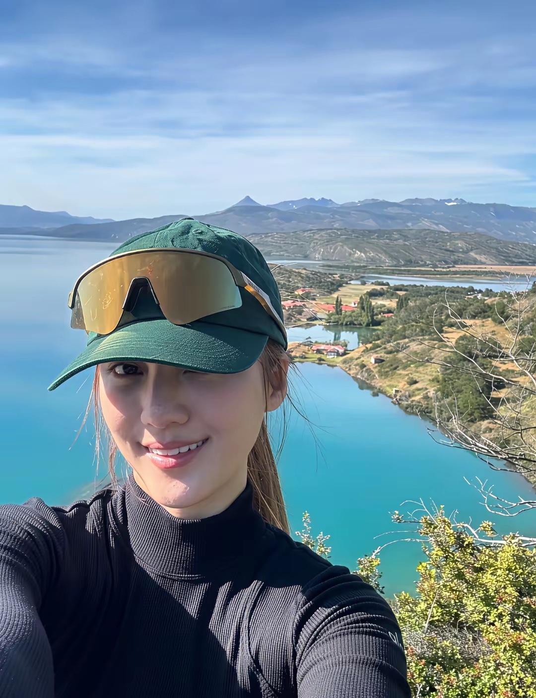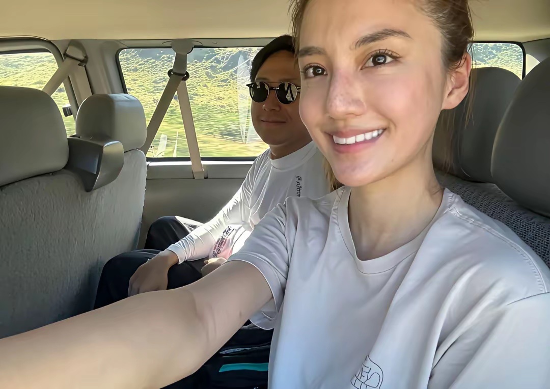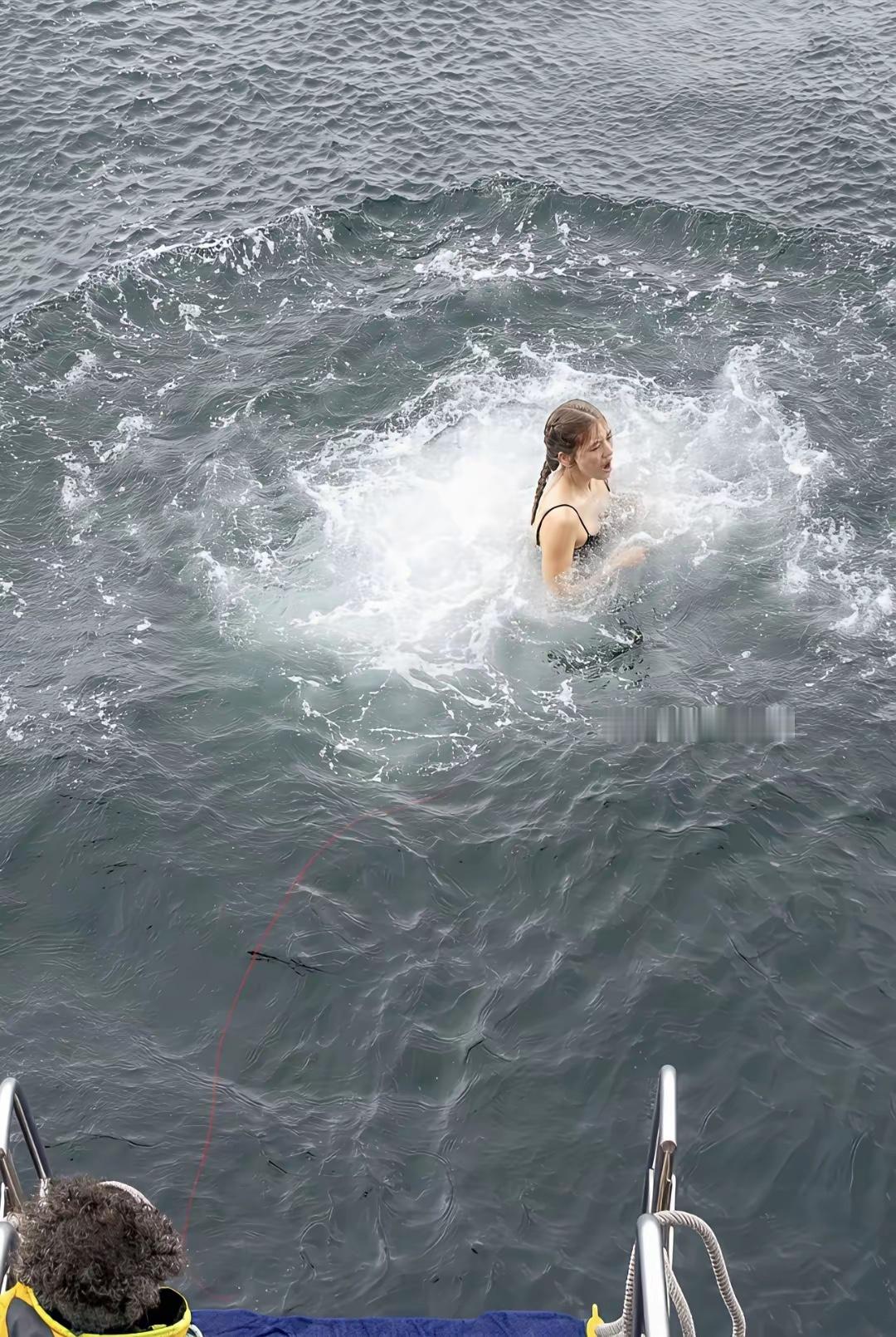 吴千语带老公智利旅游,不怕冷穿泳装跳海,素颜脸上长斑但还是美