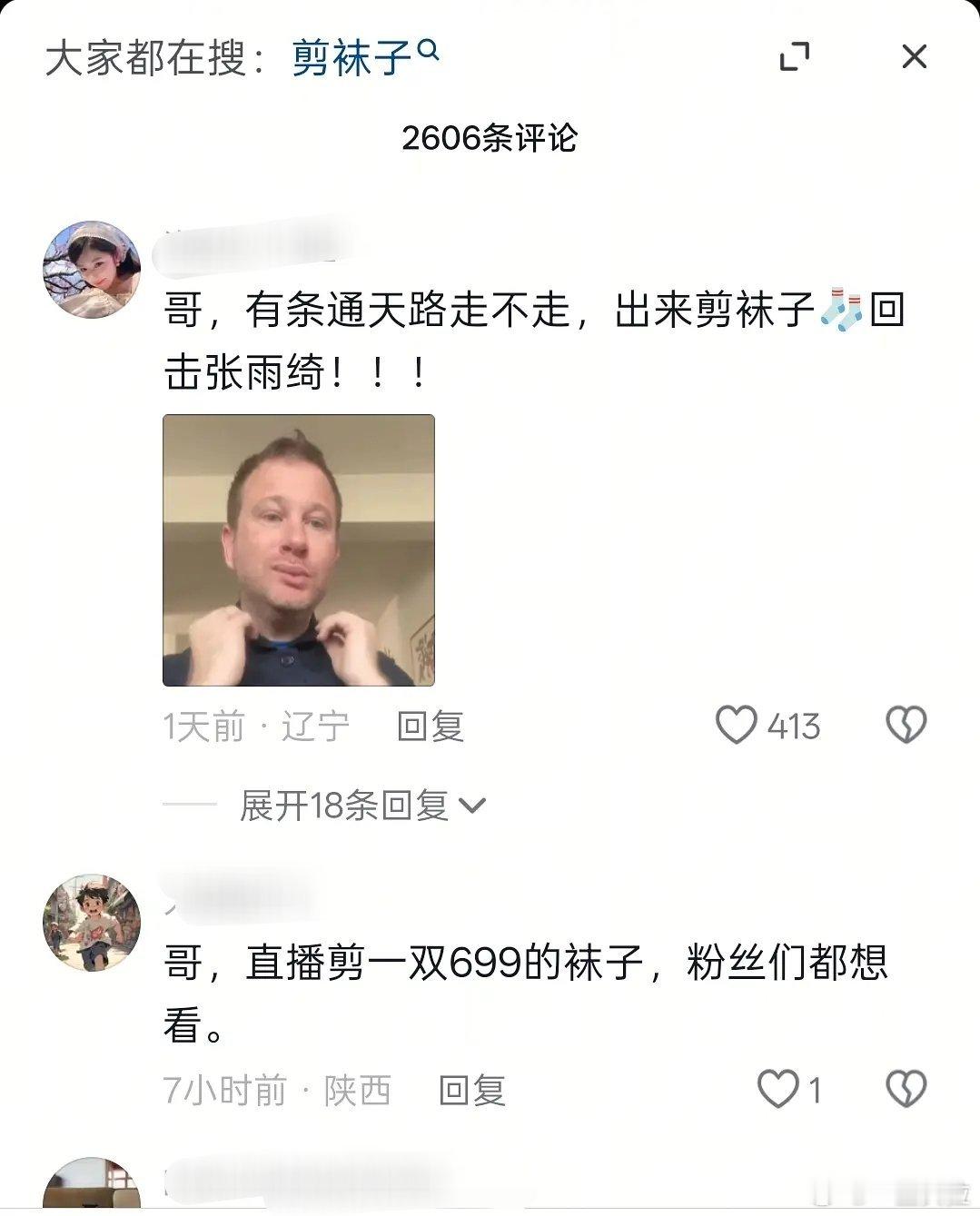 张雨绮这事儿都闹到下沉市场了啊罗志祥评论区都是让他剪袜子的(没有说罗志祥是好东西的意思)