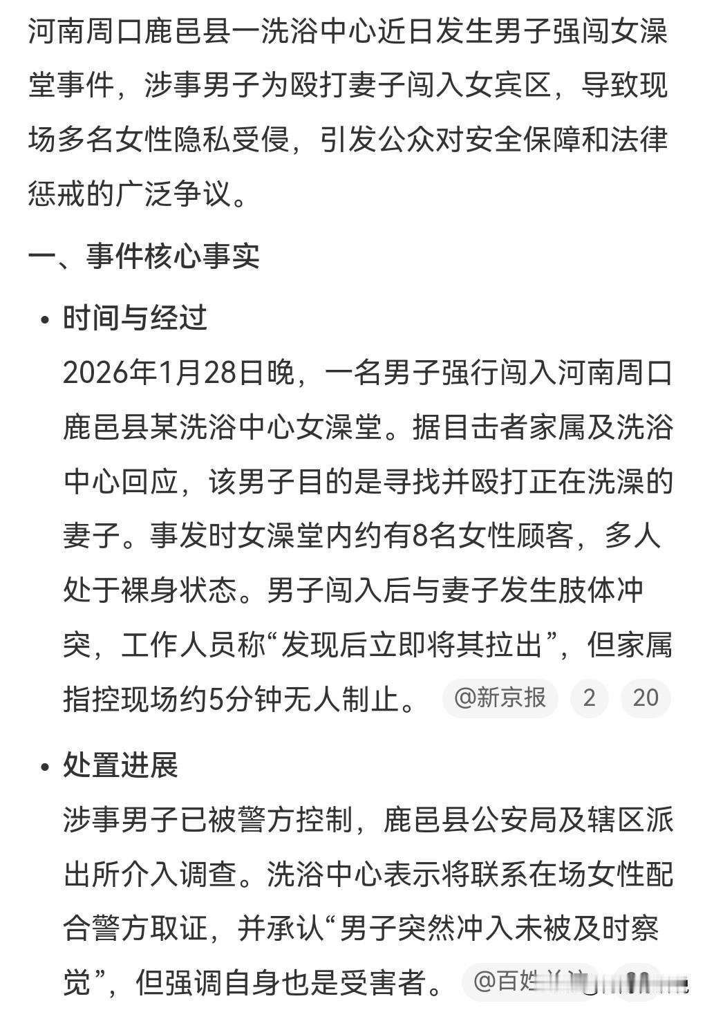 真是好大的胆子啊。 近日,河南一洗浴中心男子闯入女澡堂,原来这名女子是闯进去殴打自己的妻子。 问题是当时这个洗浴中心还有多名女性在澡堂,男子进去这就是太过分了,应该涉嫌违法了。 报警后,男子最终被控制。 这真是无法无天,把澡堂当自己家了吗?想进就进?那么多女人的隐私被他看了。 那这些被看的人心里肯定不舒服。
