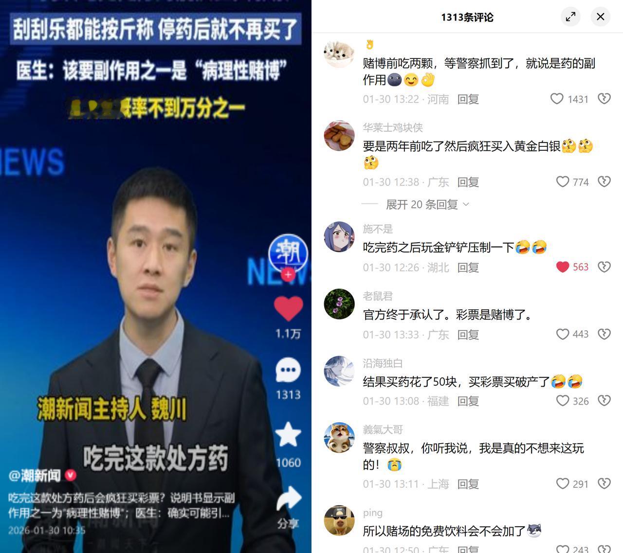 吃药吃出赌博瘾? 最近有人吐槽,吃了一款处方药后疯狂买彩票,刮刮乐能按斤买,停药后这毛病就没了。医生证实这是万分之一的罕见副作用,留言里却冒出一堆想钻空子的人,不少人琢磨着靠这个当赌博免责的挡箭牌。 这事儿说穿了,就是成年人总在找免罚借口的缩影。真查起来,国内外从没出现过靠这个免刑责的案例,倒是有不少患者因为药企没把这类罕见风险讲透,成功索赔的民事判例。 说白了,万分之一的副作用,在说明书上可能只是一行不起眼的小字,患者看不懂背后的套路,药企也乐得把小概率事件当免责声明。这种信息差,才是最该警惕的:你以为捡到的是免死金牌,结果却是没看清的陷阱。 毕竟,自己选的路,哪有靠药买单的道理?