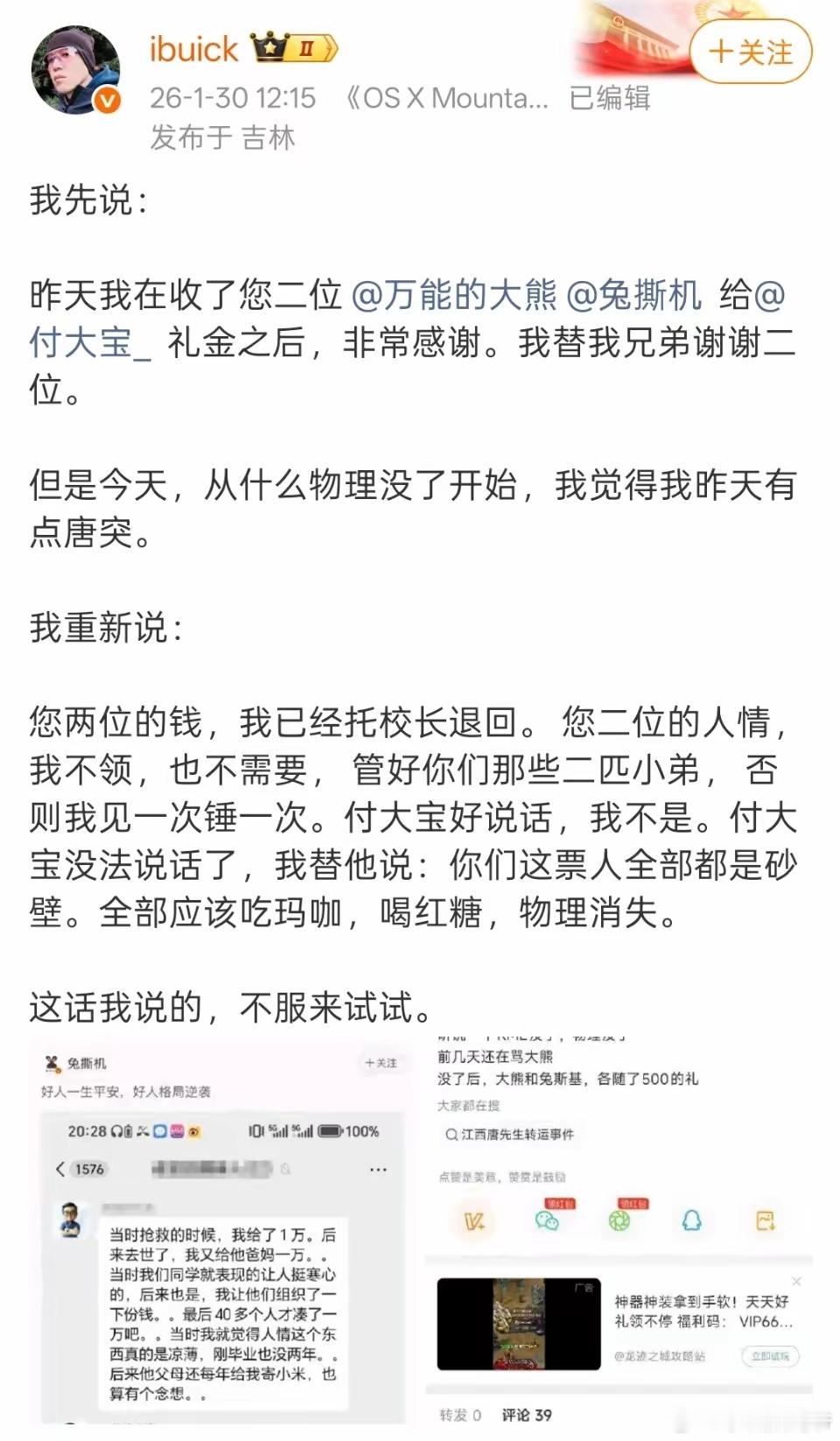 看了您发的图,带上了我的截图,我的评论也之前针对发的图作了下说明!人家大熊直接捐