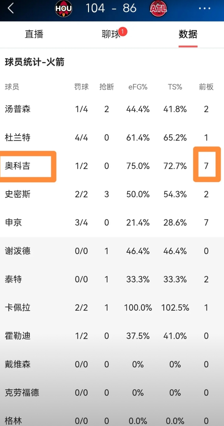 火箭主帅乌度卡对爱将奥科吉赞不绝口!在今天火箭客场以104:86大胜老鹰的赛后采访中,乌度卡教练怒赞奥科吉在前场篮板方面的表现。