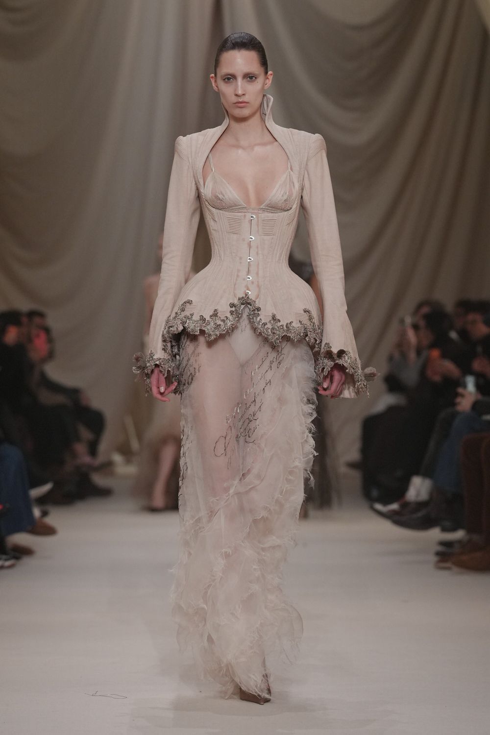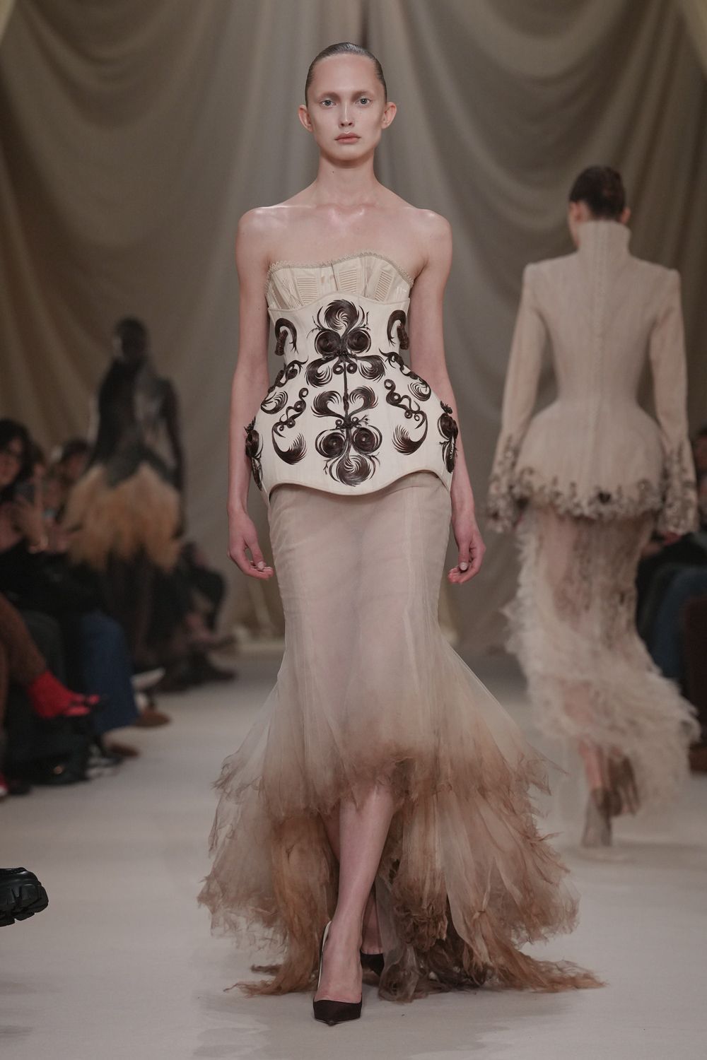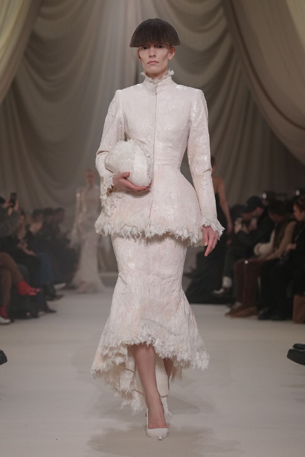 Ashi Studio S/S 2026 Haute Couture 刚柔同体的雕塑美感,一条礼裙中硬朗与柔和过渡得非常完美。巴黎高定时装周大秀直击