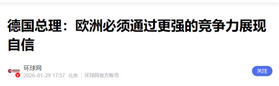 又一个“出头鸟”来了! 德国总理明确宣布 1月29日,德国总理默茨在联邦议院发表外交政策声明,强调欧洲必须通过独立自主的安全、更强的竞争力和团结来展现自信,并明确宣布德国与美国是平等伙伴而非从属关系。很明显,默茨这番话透露出欧洲正彻底告别对美国的怀旧主义情结。 过去欧洲在安全上基本靠美国撑着,经济上也常跟着美国的节奏走。但这些年下来,欧洲慢慢发现,光靠别人不靠谱,自己的命运得自己攥着。默茨这次的声明,就是把这种心思摆到了台面上,核心就三件事:安全上自己搞、经济上强起来、欧洲内部抱成团,靠这三点活出底气。 先说说安全自主这事,德国是动真格砸钱了。以前欧洲防务大多依赖北约,而北约里美国是绝对的主导。现在德国要打破这种局面,军费一涨再涨。 根据德国2026年的预算草案,明年国防开支要达到1082亿欧元,创下冷战结束以来的最高纪录,占德国2024年GDP的2.5%。这笔钱里,光买军事装备就占了478.8亿欧元,其中126.7亿欧元专门用来采购弹药,还有15.8亿欧元投到军事研究上,搞点新装备、新技术。 不只是德国自己,欧盟也在整合防务力量。计划到2030年,欧盟内部的国防贸易额占比要不少于35%,内部采购武器装备的比例得过半,联合采购的份额也要占到40%。 之前欧盟还推动14个国家一起买防空系统,一下子就把单套装备的成本降了30%。 另外,欧盟还在建快速反应部队,目标是7天内就能把兵力派到冲突地区,太空领域也在搞军事级的监视和通信能力,就是想在安全上少看美国脸色。默茨还特意批评美国,说不能诋毁德国士兵,这也是在表明,德国作为盟友有自己的尊严,不是美国的附属。 经济上,欧洲也在跟美国掰手腕,争夺主动权。之前美国搞芯片补贴,明确规定拿了钱的企业不能在欧洲扩大产能,直接导致一家欧洲半导体企业推迟了在法国的40亿欧元投资。美国的新能源补贴也让欧洲企业吃亏,特斯拉都暂停了德国工厂的扩建,转而去美国建厂。 面对这种情况,欧盟也拿出了对策,砸430亿欧元搞《芯片法案》,目标是到2030年把本土芯片产能提升到全球的20%,不再依赖别人的技术。 新能源方面,欧盟推出《净零工业法案》,要求到2030年本土清洁技术产量能覆盖40%的需求,对抗美国的补贴政策。 默茨还宣布2月要开欧盟特别峰会,核心议题就是怎么让欧盟重新找回经济竞争力,说白了就是要靠自己的产业实力站稳脚跟,不再被美国的政策牵着鼻子走。 不过话说回来,欧洲想自主自立,难度可不小,眼前就有不少坎儿。首先内部就不太平,欧盟二十多个国家经济水平不一样,想法也不齐。有的国家经济弱,还得靠美国的能源和市场,不敢跟美国走得太远;有的国家想快些推进自主,有的却怕得罪美国,协调起来特别费劲。 就像之前丹麦牵头搞的联合军演,德国、法国等国都参与了,可总共才派了37个人,规模小得可怜,也能看出欧洲内部防务整合还没形成真正的合力。 再就是美国的反制压力。欧洲对美国科技公司征数字服务税,每年让美企多花74亿美元,美国立马就用芯片补贴、加征关税来回击。 欧美互相设置贸易壁垒,搞得风电项目成本涨了19%,太阳能电站建设周期也延长了8个月,最后吃亏的还是双方企业。而且欧洲很多高端技术、能源供应还离不开美国,想一下子脱钩根本不现实。 还有经济底子的问题,德国经济已经连续两年负增长,虽然计划2026年把投资额提高到1236亿欧元,比2024年多了近500亿欧元,但钱要花在刀刃上,既要搞防务又要搞产业升级,资金压力不小。 欧盟的芯片法案、防务基金看着钱不少,可分摊到各个国家、各个项目上,能起到的效果还要打个问号,技术瓶颈也不是短时间能突破的。 值得一提的是,默茨这次也明确表态,乌克兰问题不会跟俄罗斯直接谈判,要让俄乌双方自己谈,德国不做调解人。这也能看出,德国在外交上不想再跟着美国的节奏定调,而是有了自己的判断,不想被卷入不必要的博弈,把精力放在自己的发展上。 现在欧洲的路子很清晰,就是要靠安全自主、经济升级、内部团结摆脱对美国的依赖,默茨的声明就是吹响了号角。 2026年欧盟还会推进《欧洲国防工业战略》,加速快速反应部队建设,芯片和新能源产业的自主计划也会落地。但这注定是个慢过程,内部协调、美国反制、经济和技术短板,都是绕不开的难题。 欧洲想彻底告别对美国的怀旧情结,不再做从属者,光靠喊口号没用,得实打实把军费花到位、把产业做起来、把内部拧成一股绳。 德国作为欧盟的领头羊,这次先站了出来,但能不能带动整个欧洲走稳自主之路,还要看后续的行动,更要看外部环境给不给机会。毕竟在复杂的国际局势里,想自己当家作主,从来都不是一件容易的事。