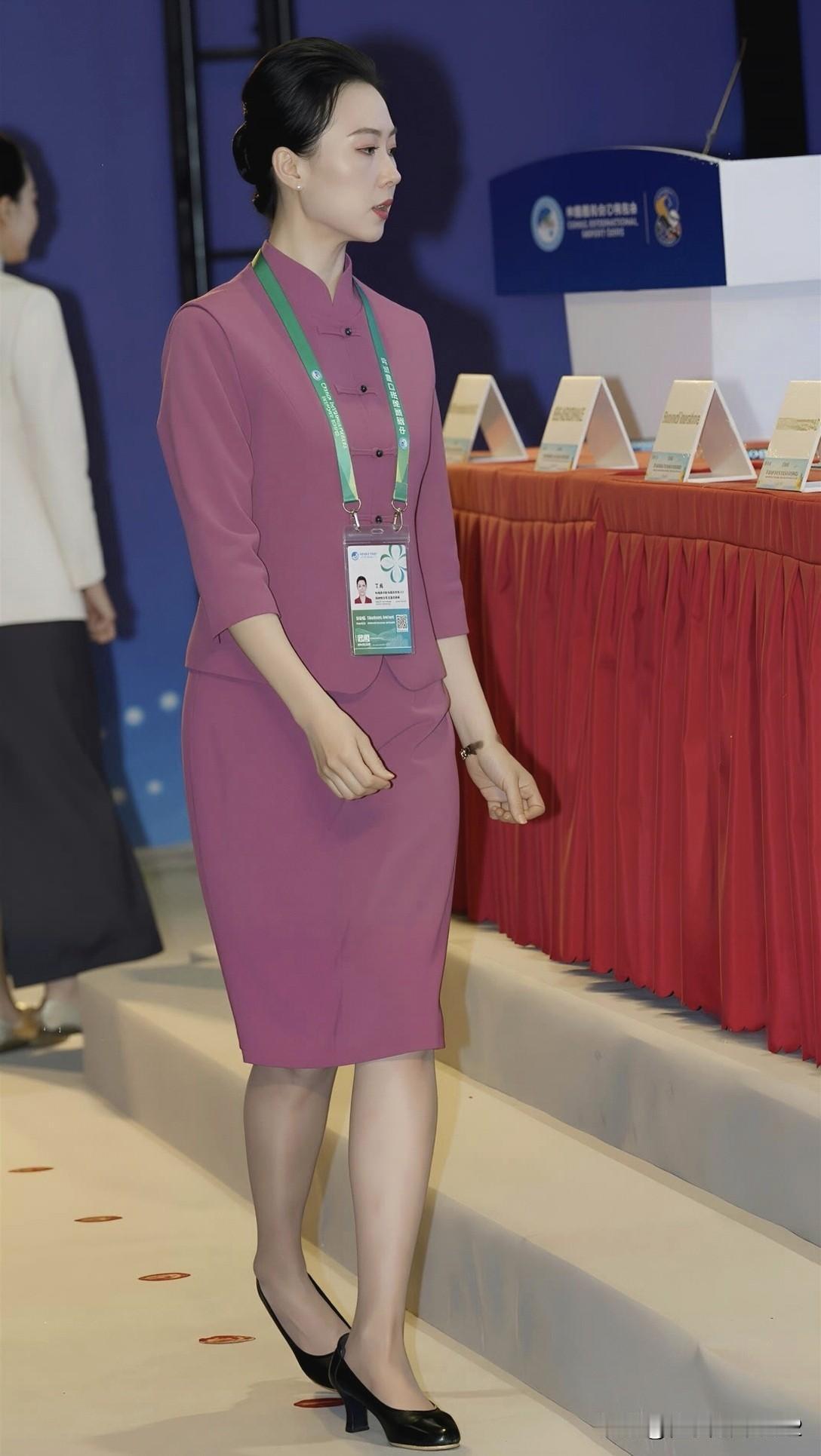 优雅职场穿搭,粉色西装裙搭配黑色高跟鞋,自信满满