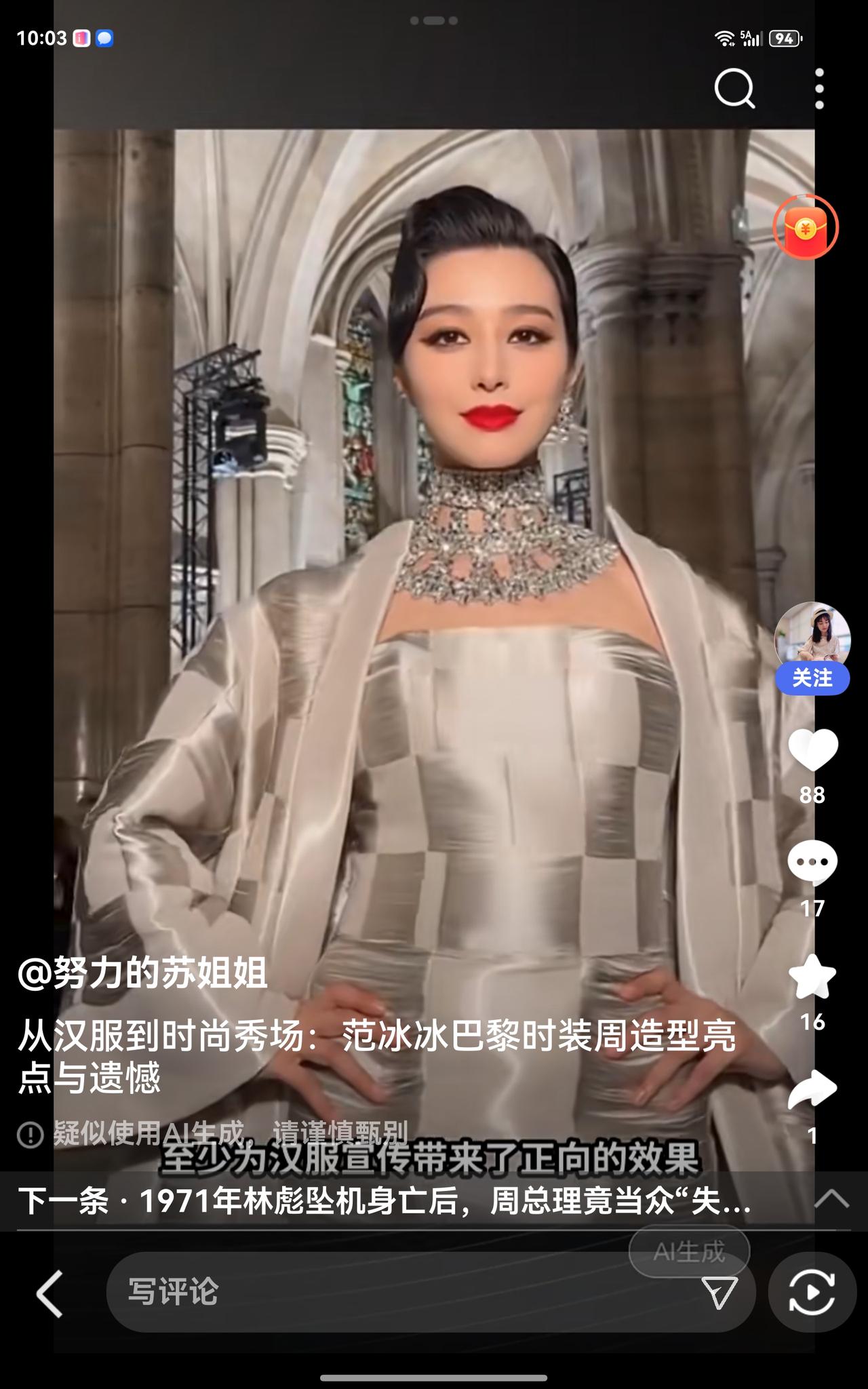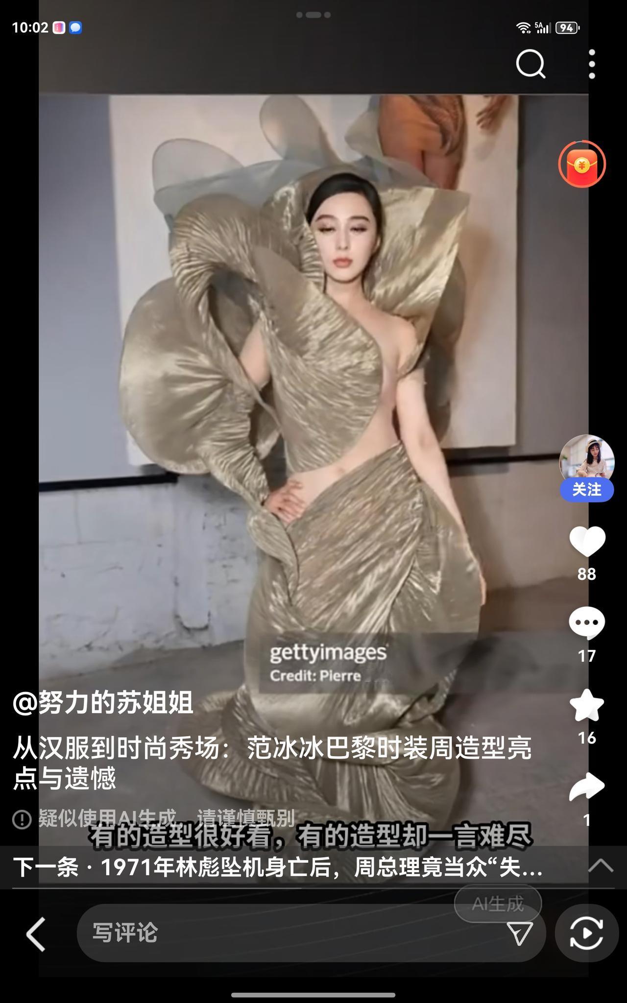巴黎时装周范冰冰六套战衣上场走秀,美不美?还是第一图最美! 巴黎时尚周穿搭 巴黎服装时尚周 巴黎时装设计 巴黎时装造型 巴黎高级时装 巴黎时装周