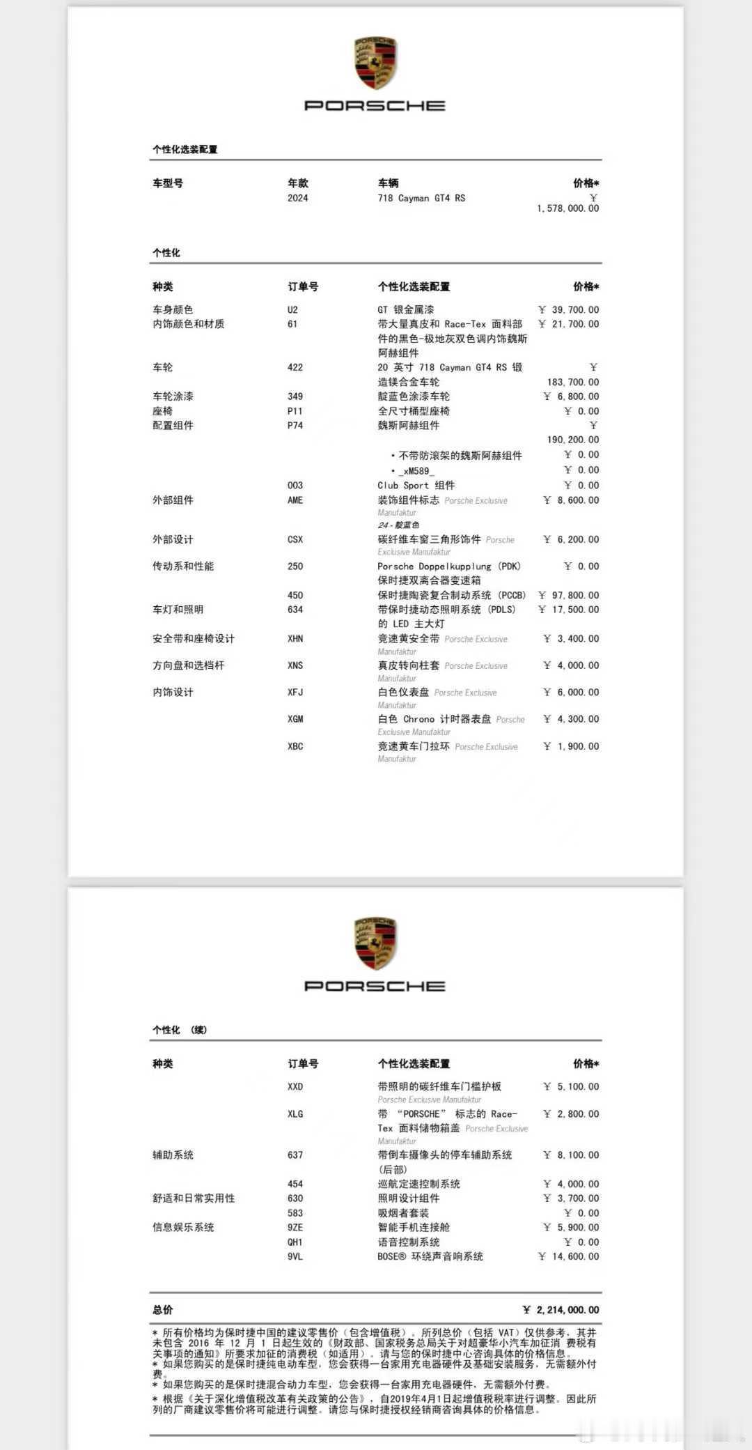 保时捷718 GT4 RS,特殊配色,高定版配置