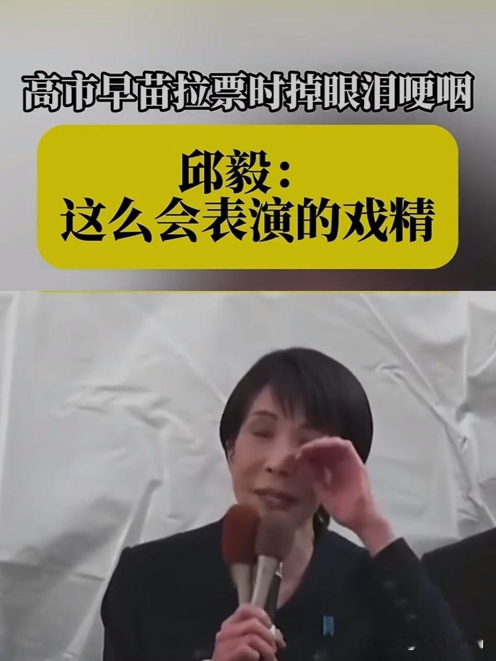 高市早苗的眼泪,到底值几票? 高市这波哽咽拉票,被名嘴吐槽“戏精附体”,现场仅十几人围观更是尴尬到极点。政治表演一旦过了火,反倒像劣质煽情戏,观众不但不买账,还想快进。 说实话,选民早就不吃“悲情牌”那套了。眼泪若没有实实在在的政策衬托,不过是舞台上的廉价道具。何况当下大家关心的是民生饭碗、经济出路,不是哪位政客的哭戏功底。 真正该哽咽的,恐怕是那些被空洞表演浪费的公共时间。与其琢磨怎么哽咽得更动人,不如想想怎么把事情做得更实在。政治舞台不需要奥斯卡,需要的是踏实干活的普通人。 高市早苗下台 高市下台