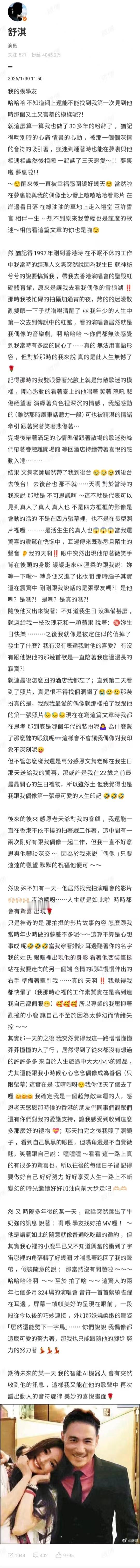 【舒淇发布千字追星长文】舒淇粉了张学友30多年我的天呢~这两千字小作文完全在演我追星! 回忆了生日当天第一次看张学友音乐剧,还去后台看到本人,收到了张学友送的玫瑰花和苹果,激动得忘了是怎么回酒店的~完全追星小女生!舒淇两千字追星长文