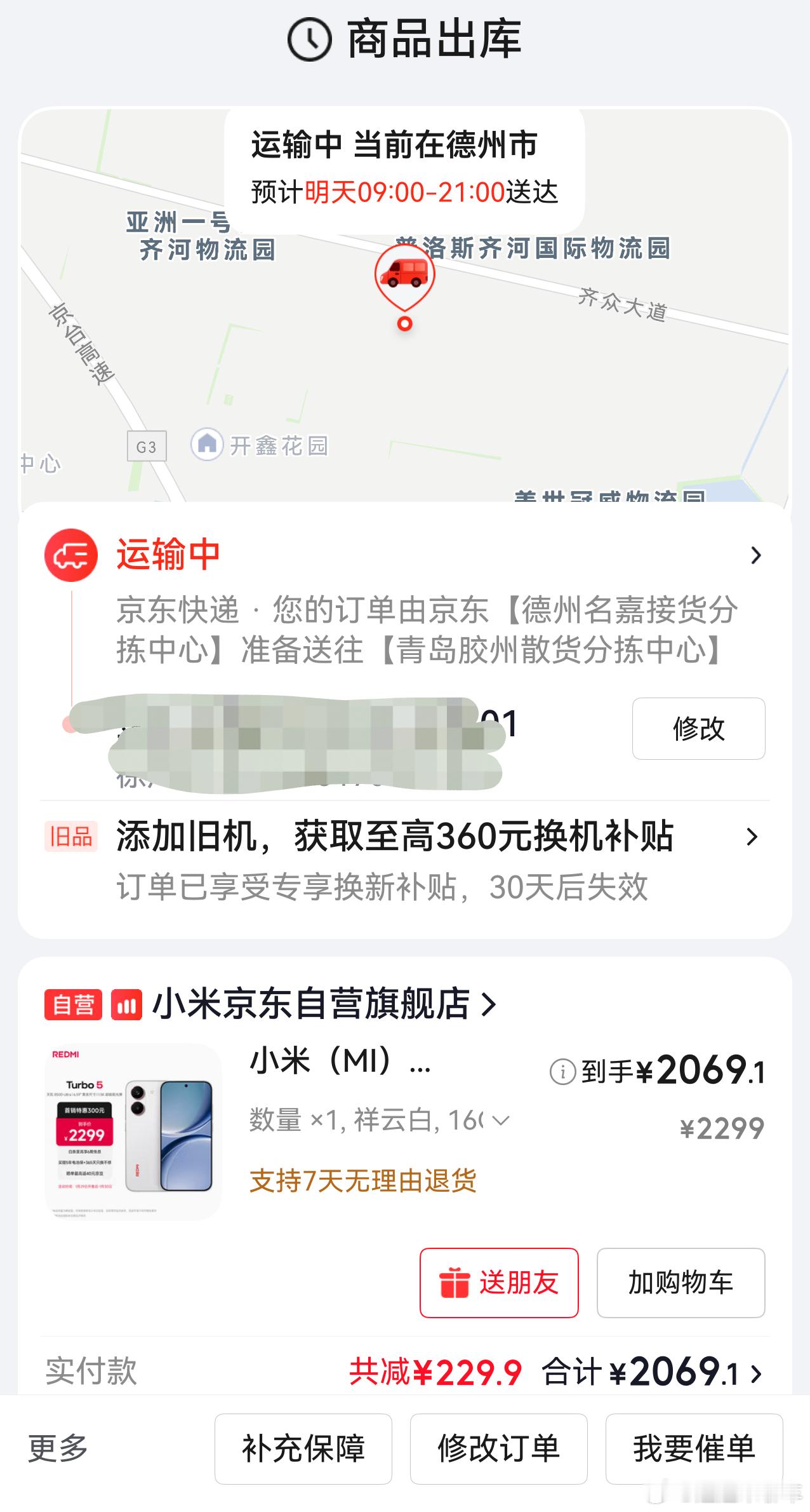 看都在这夸红米turbo5 性价比高,加上有国补又省了200多,买回来试试感觉吧,不过说回来还是京东比较快,今天买明天到!
