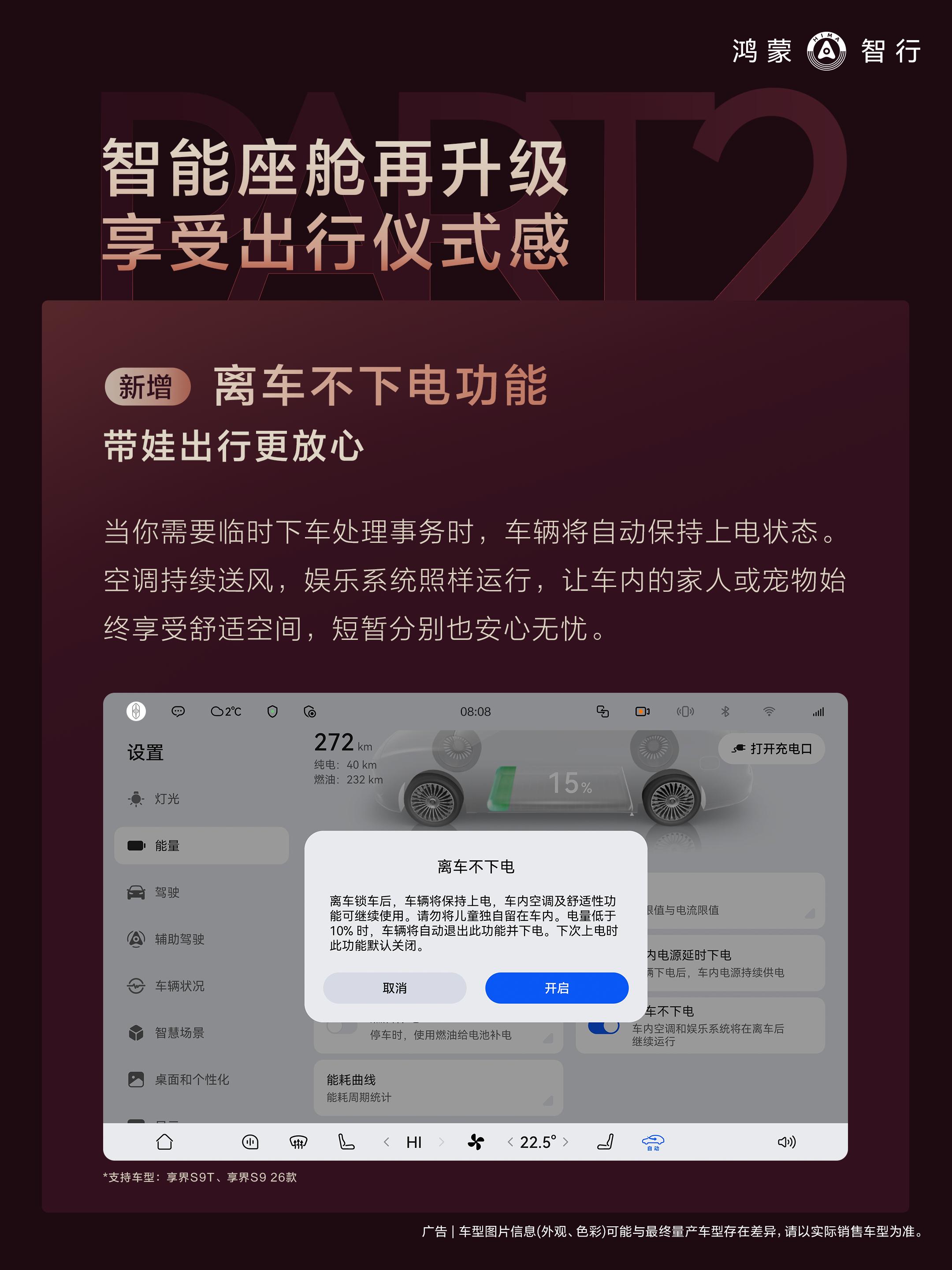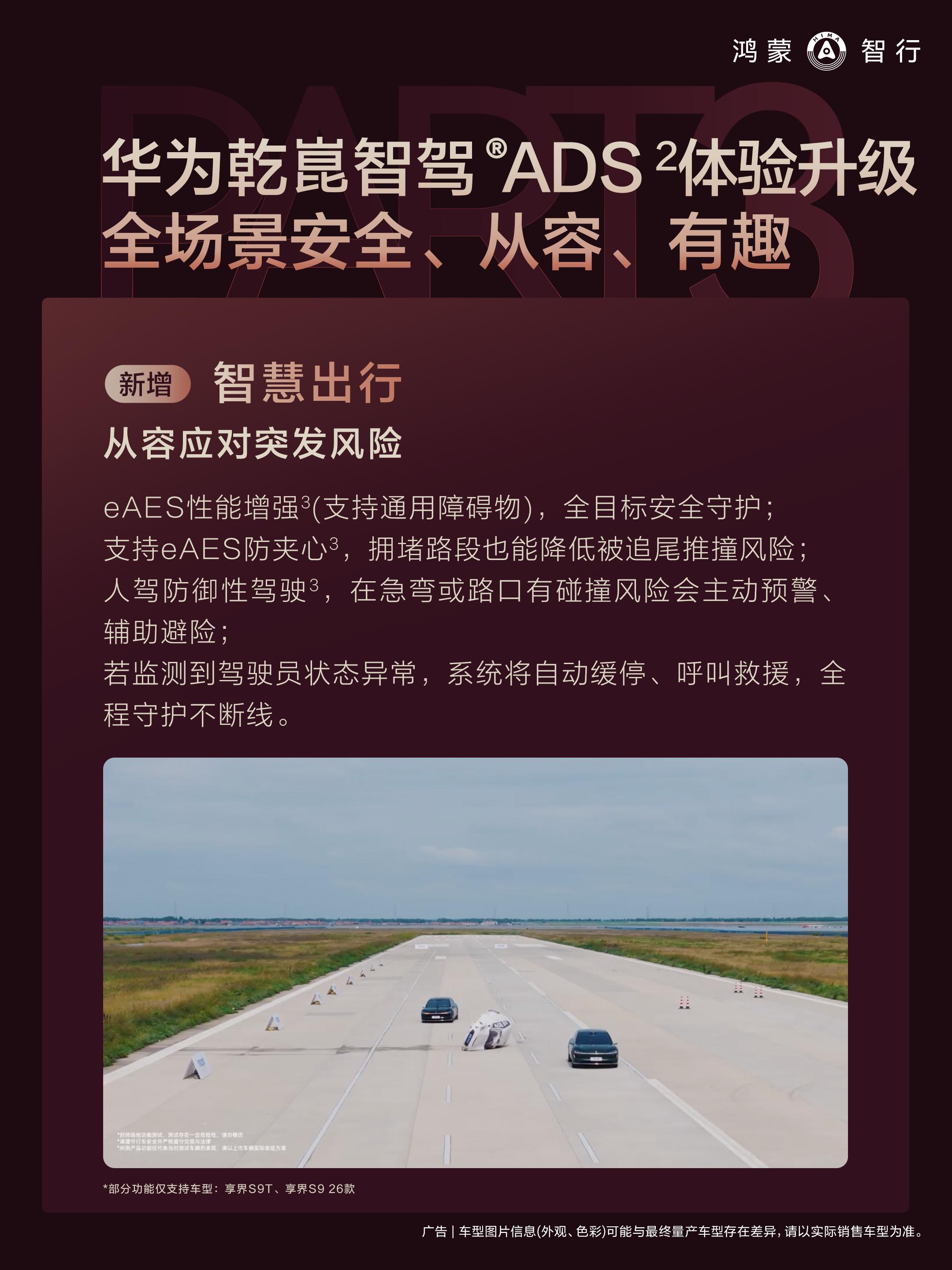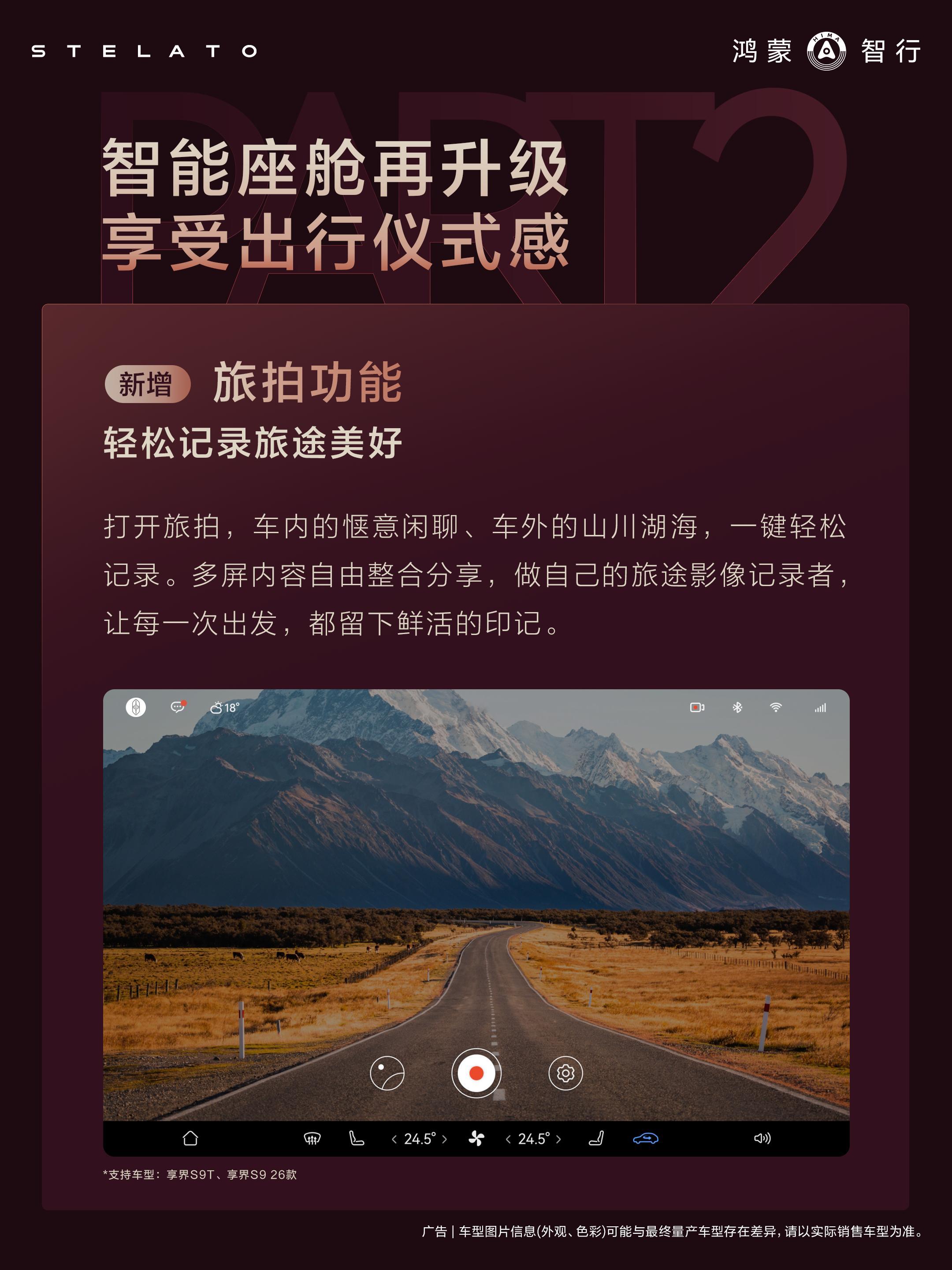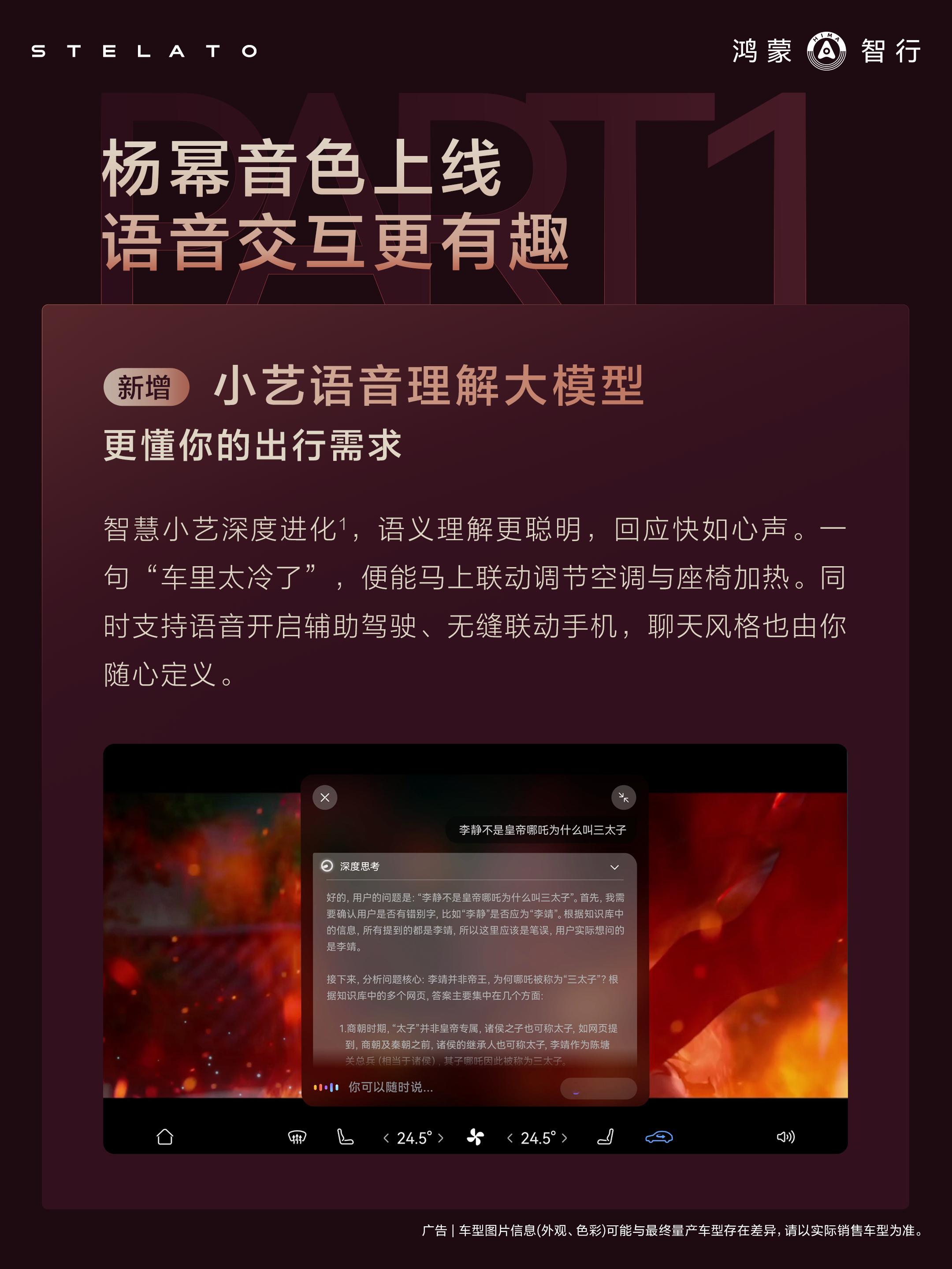 各位享界车主,收到最新的全量OTA了吗?这次OTA小艺、座舱、辅助驾驶等都迎来了重磅升级。享界推出杨幂语音包,全场景能聊能干,如同明星坐副驾,真人感拉满。另外,华为乾崑智驾® ADS 体验也升级了,支持组队出行、自车意图播报、eAES防夹心等,让智慧出行更安全、从容、有趣。鸿蒙智能座舱新增鸿蒙旅拍、车外喊话、 “舞林盟主”,升级无麦K歌2.0等,让出行更具仪式感。 你的享界OTA了吗 ?售价30.98万元起,你心动了吗?