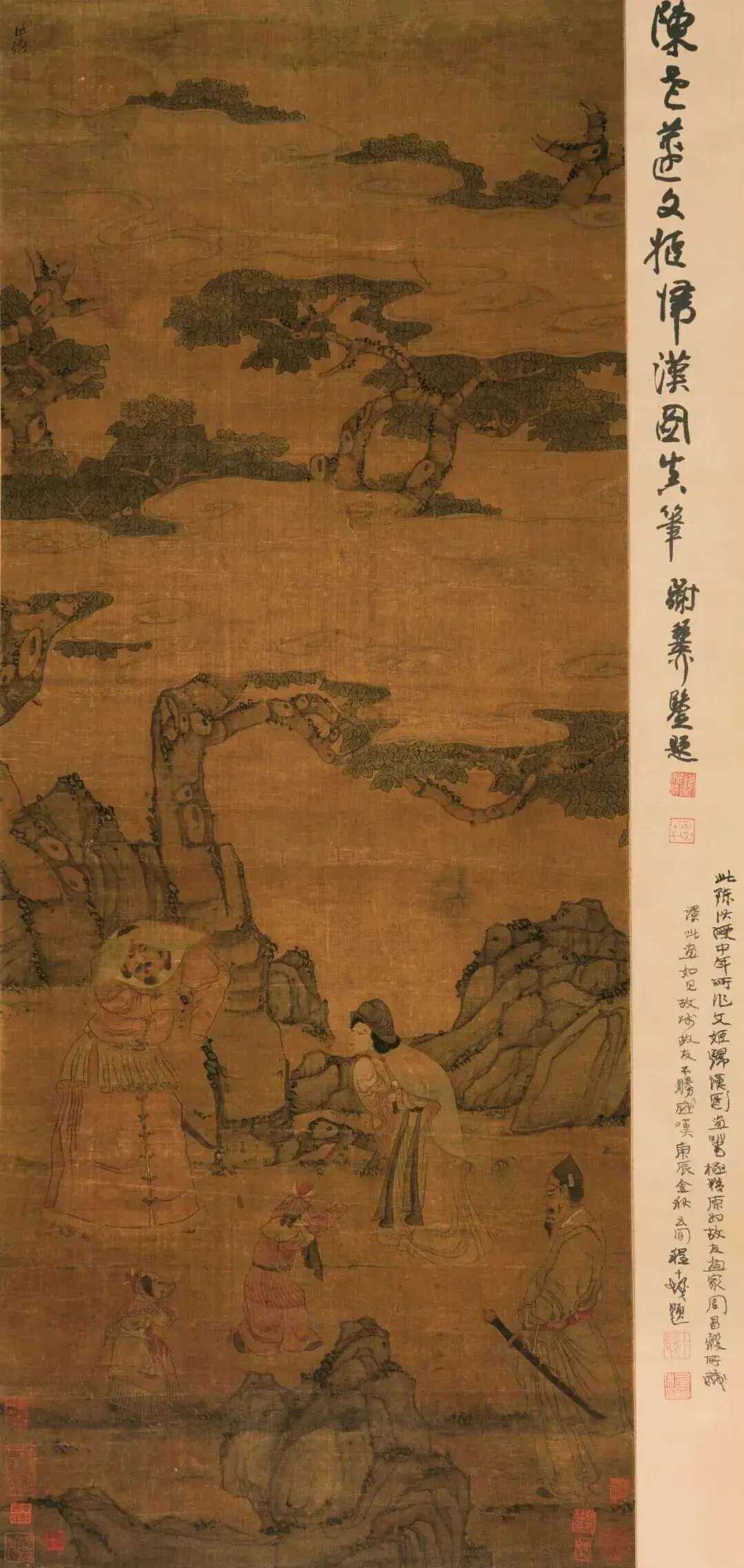 明 陈洪绶《文姬归汉》,跟咱们印象里那种宏大场面、热闹归途的画儿完全不一样。他没去画大漠驼队、风雪漫天,也没把汉使威仪画得高高在上,反而把画面画在了离别的瞬间。