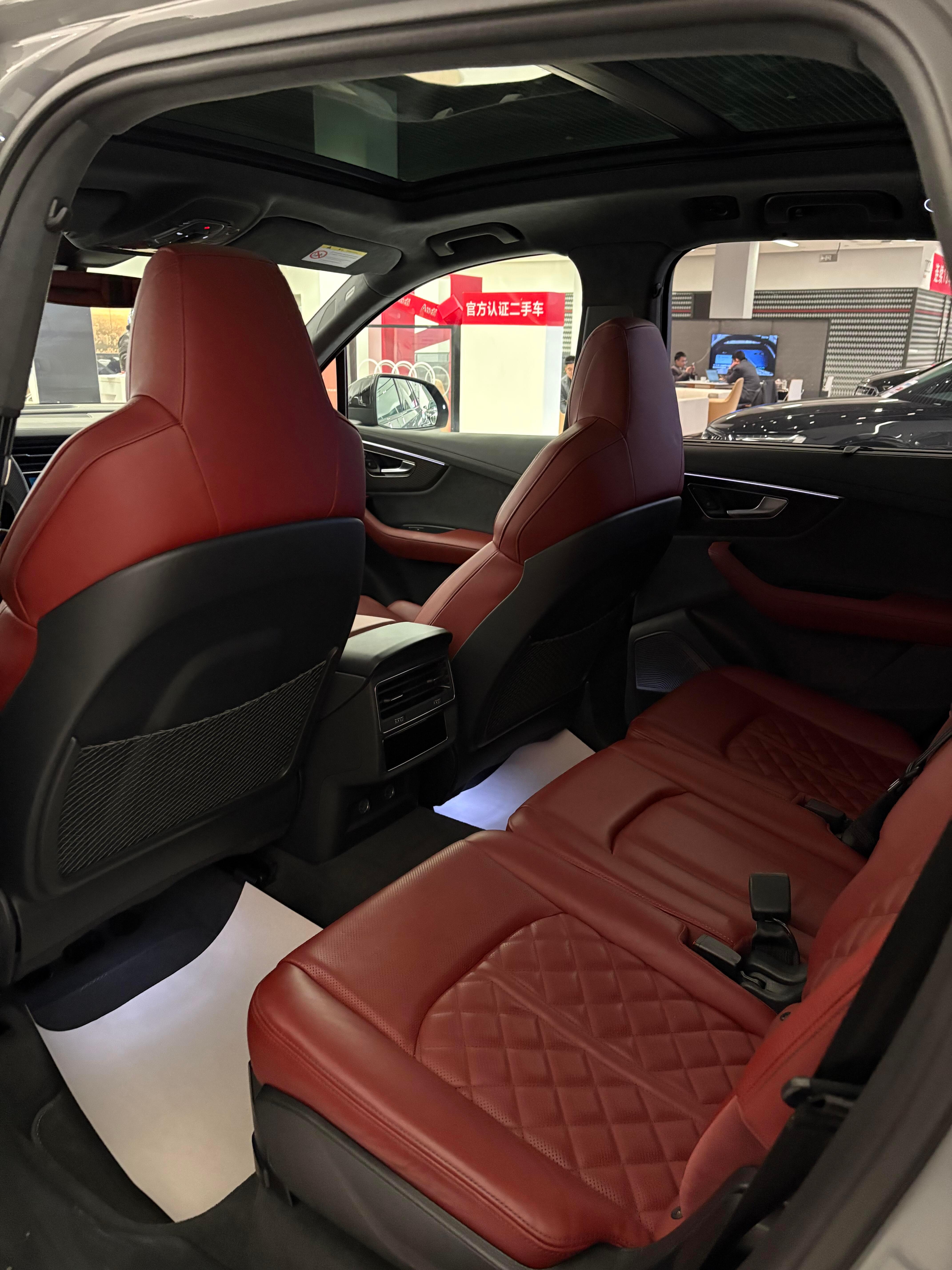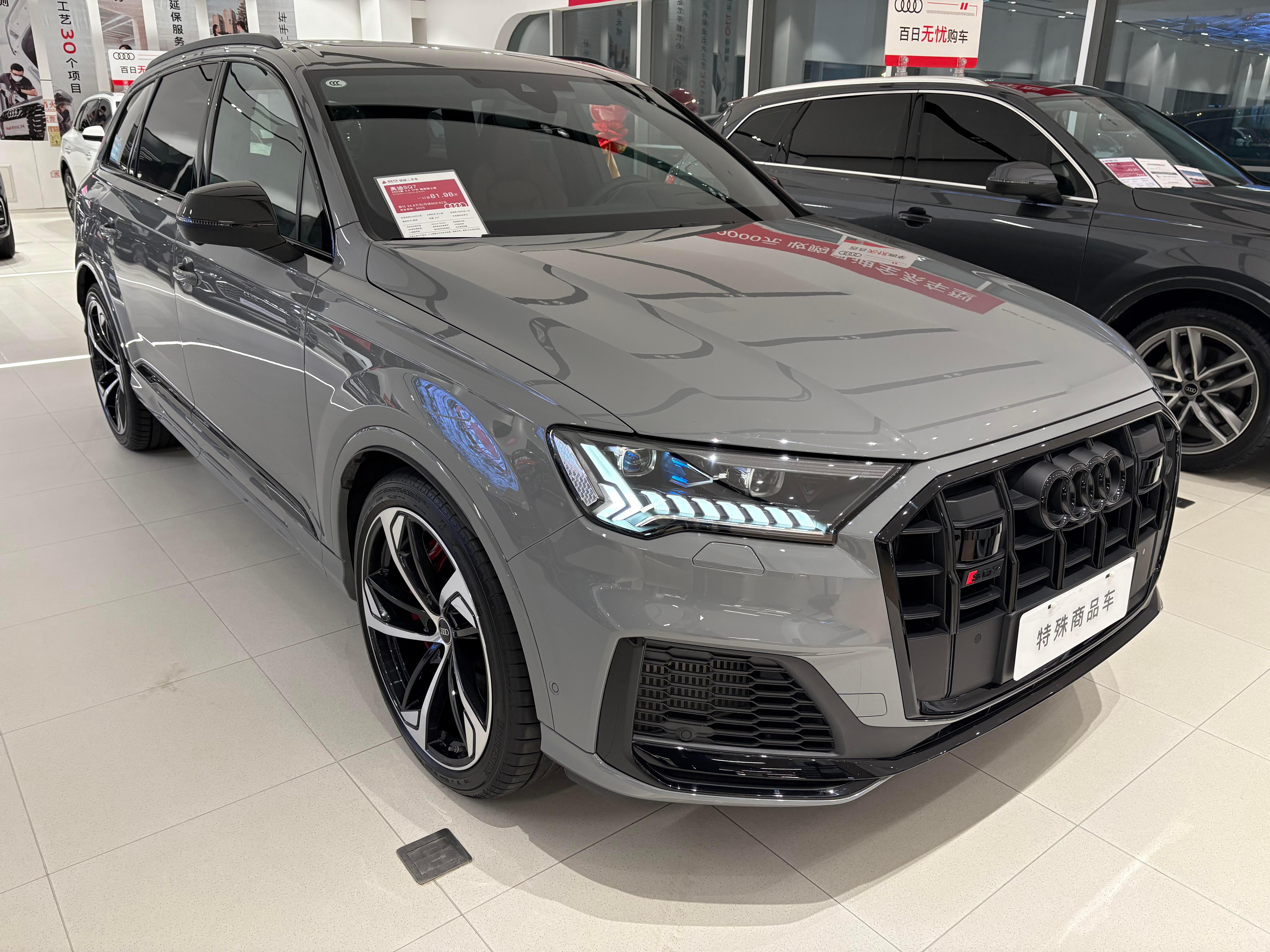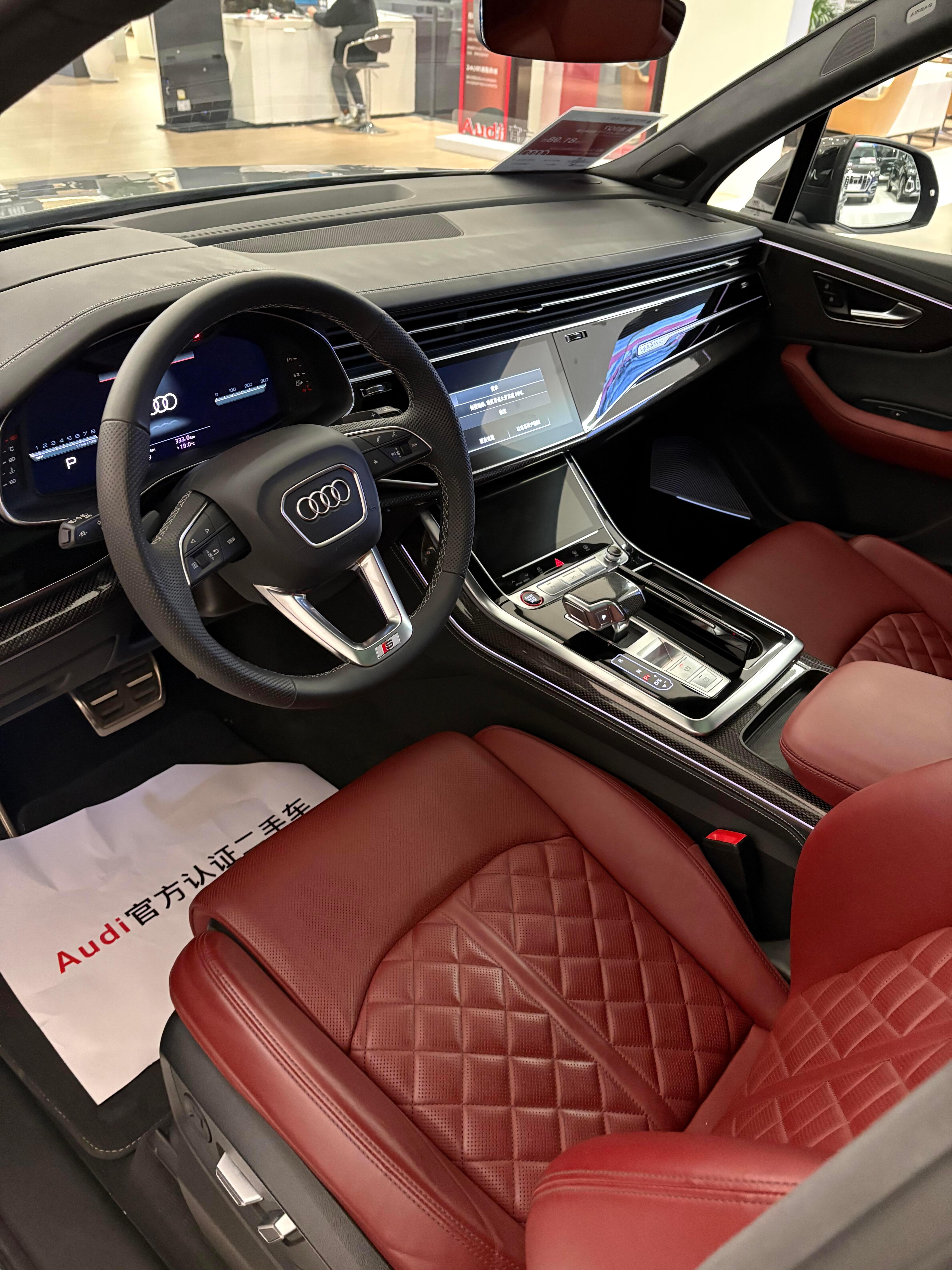 奥迪SQ7 4.0TFSI猛兽507匹马力大V8全车原漆5800㎞矩阵式激光大灯 抬头显示 大BO音响360全景影像 22寸大轮毂 空气悬架8AT变速箱 碳耳 座椅记忆 翻毛皮顶棚这个是官方活动车。也是跟新车一样。上一手户,这个不是涉水车。 这个是暗夜骑士版的,指导价116.98万,现在优惠完是818000元质保还剩一年