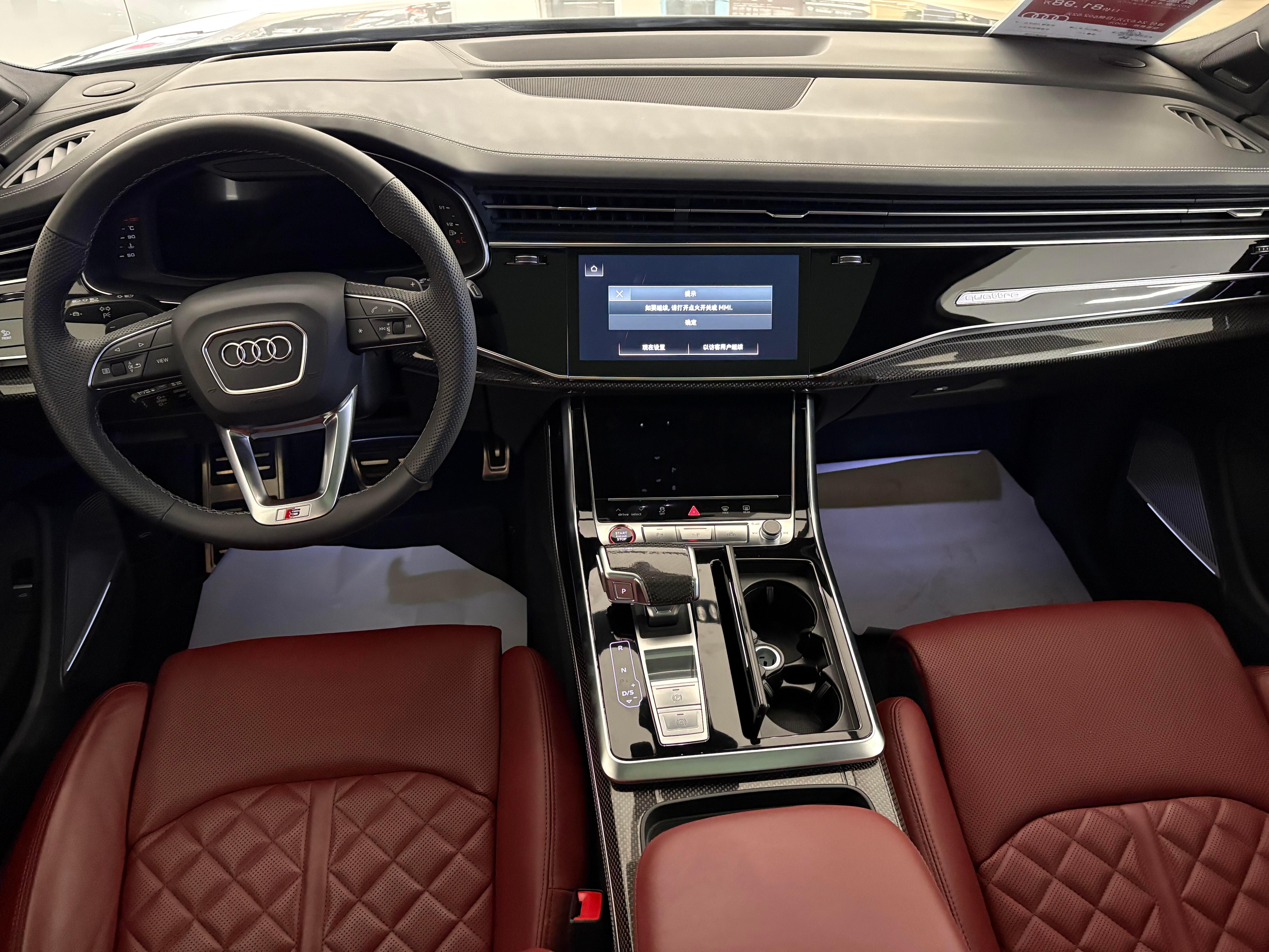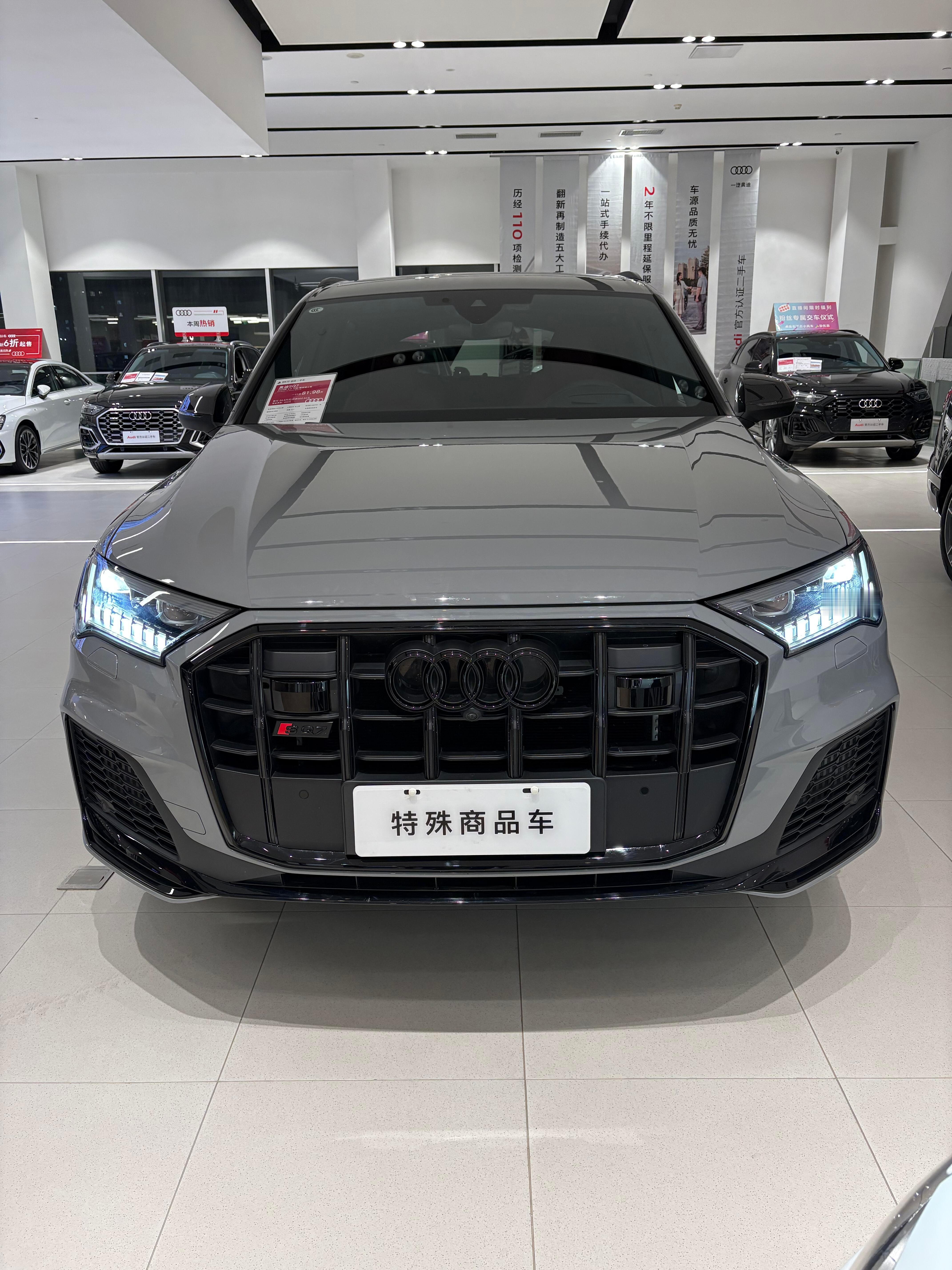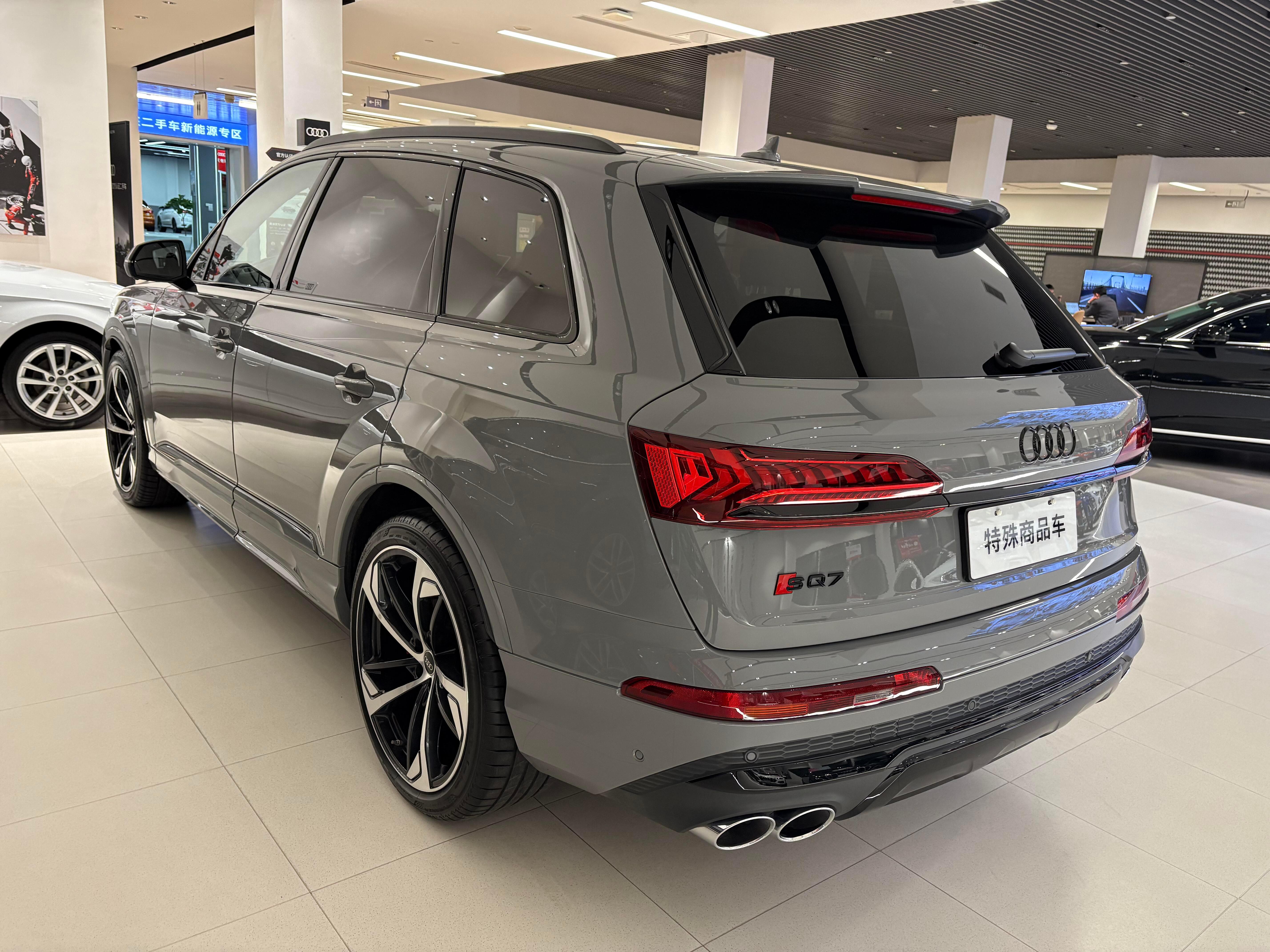 奥迪SQ7 4.0TFSI猛兽507匹马力大V8全车原漆5800㎞矩阵式激光大灯 抬头显示 大BO音响360全景影像 22寸大轮毂 空气悬架8AT变速箱 碳耳 座椅记忆 翻毛皮顶棚这个是官方活动车。也是跟新车一样。上一手户,这个不是涉水车。 这个是暗夜骑士版的,指导价116.98万,现在优惠完是818000元质保还剩一年