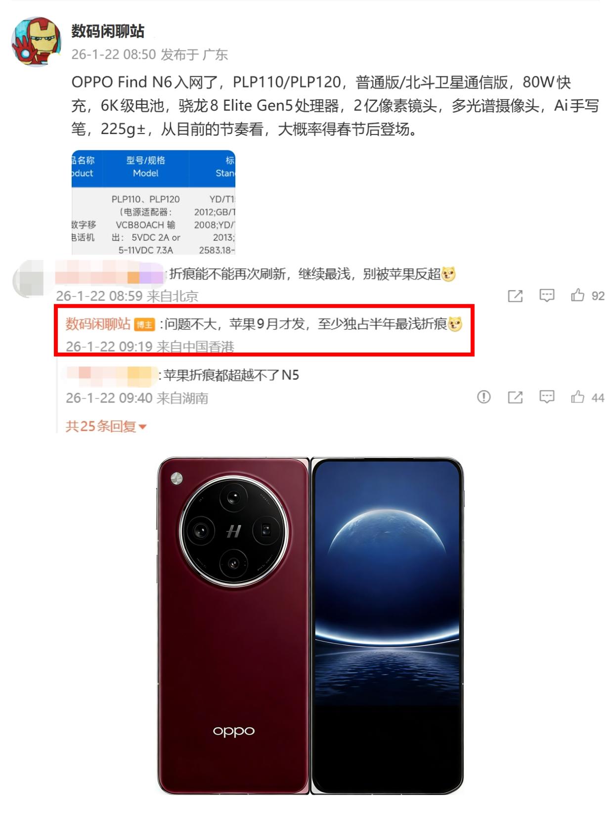苹果首款折叠屏,就这么水灵灵地抄作业了? 之前就传苹果为了做折叠屏,买了OPPO Find N5回去研究,现在新爆料来了,不止研究,还直接全套照搬了。。。 - 看样子,应该是屏幕、铰链这些比较核心的供应链技术,iPhone Fold是照着Find N系列走的,真的假的啊?毕竟OPPO的折痕控制和铰链确实是挺强的,感觉这个消息还挺靠谱的哦 - 新款OPPO Find N6听说也要来了,据说是首发“无折痕”技术,还要独占半年,那应该就是独占到iPhone Fold 9月份发布了? - 那这还等啥9月份啊,先期待一下OPPO Find N6不也挺好的?而且听说iPhone Fold估计接近2w了,说实话不如看看国产划算,大家觉得呢? 苹果折叠屏 iPhoneFold 折叠屏 OPPOFindN6