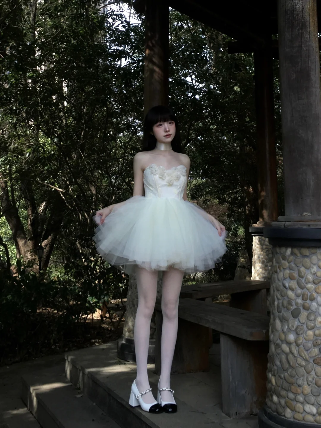 永远喜欢自带胸垫的抹胸小礼裙![喝奶茶R] 有点小高腰的设计很显腿长 而且裙子自带蓬度