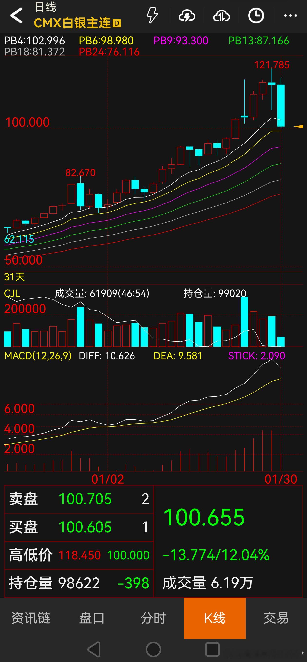 黄金跌5%,高位回撤超过10%。白银跌12%。如果能跌到4500美金,我就多买点。泰国期货交易所(TFEX):黄金在线期货临时暂停交易。