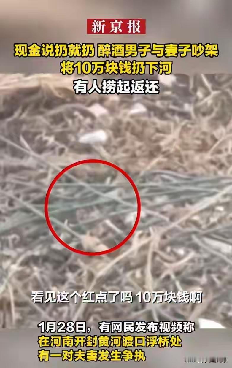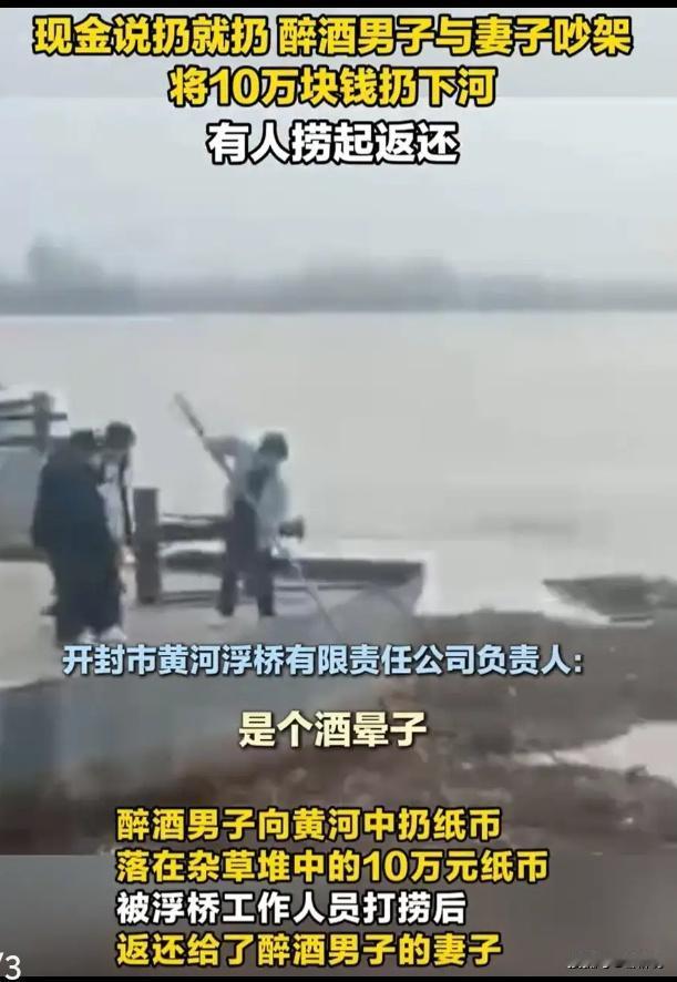 河南开封黄河浮桥惊魂一幕!醉酒丈夫与妻争吵竟将十万元现金怒掷滔滔黄河,围观者惊呼:捞上来的不是钱,是千万家庭的缩影! 那沓鲜红的纸币在空中划出一道刺眼的弧线,像极了生活里那些被情绪撕碎的体面。黄河水在脚下翻滚,围观者的惊呼被风吹散,只有那位妻子煞白的脸,定格成这个冬天最扎心的画面。十万块,可能是夫妻俩一年的积蓄,可能是孩子三年的学费,也可能是一个家庭最后的缓冲垫,却在几秒的失控里,变成了河面上飘摇的赌注。 现场目击者后来回忆,男人浑身酒气,争吵声大得吓人。没人知道具体为了什么,也许是房贷,也许是琐事,但压垮骆驼的最后一根稻草,往往轻得让人事后哑然。他掏出那捆钱时,周围瞬间安静了,有人以为他要砸向妻子,没想到他的手一扬,直接抛向了浑浊的黄河。那一刻,扔掉的仿佛不是钱,而是成年人最后的理智与体面。 万幸的是,钱落在了近岸的杂草丛中。浮桥工作人员眼疾手快,抄起长杆就去打捞。动作小心翼翼,仿佛在挽救一个即将坠崖的生命。钱捞上来了,湿漉漉、沉甸甸的一沓,交还到妻子颤抖的手中。而那个刚刚还“视金钱如粪土”的男人,竟又扑上来争抢,场面一度混乱不堪。酒精让他完成了从“挥霍者”到“后悔者”的急速变脸,这戏剧性的一幕,比任何电影都来得荒诞又真实。 我们嘲笑他“酒蒙子”,可心里是否也有一丝后怕?谁没有在极度愤怒或崩溃的边缘,产生过那种毁灭一切的冲动?想砸碎手机,想撕掉文件,想将珍视的东西狠狠践踏。区别只在于,大多数人忍住了,而酒精,恰好卸下了那最后一道名为“克制”的枷锁。他的失控,映照出我们每个人心中那头偶尔咆哮的野兽。 这笔失而复得的钱,真的能回到从前吗?妻子攥着湿透的钞票离开时,背影写满了疲惫与难堪。往后岁月,每次争吵,这个惊心的场景都可能再度浮现。钱能捞回,信任的裂缝如何填补?当众丢掉的尊严,又该如何捡起?这场闹剧的代价,远不止十万现金那么简单,它更像一根刺,扎进了婚姻最柔软的地方。 从上海地铁女子撒红包求分手,到如今黄河边扔钱泄愤,极端行为背后,是当代人无处安放的情绪高压。我们活得越来越“正确”,也越来越沉默,所有压力在体内不断积压,最终在一个脆弱的节点,以这种荒诞又惨烈的方式决堤。这不是为醉酒开脱,而是警醒我们:管理情绪,是这个时代最重要的生存技能。 黄河水依旧东流,仿佛什么都没发生。但这个故事值得每个成年人深思。它关于克制,关于珍惜,更关于我们在愤怒时,该如何守护那些真正贵重的东西——爱、家与来之不易的平静生活。下一次情绪失控前,请先深呼吸,问问自己:我扔出去的,究竟是自己一时的痛快,还是一个家庭的未来? (来源:综合自新京报、搜狐视频等媒体报道及现场目击者描述) 情绪管理 家庭关系