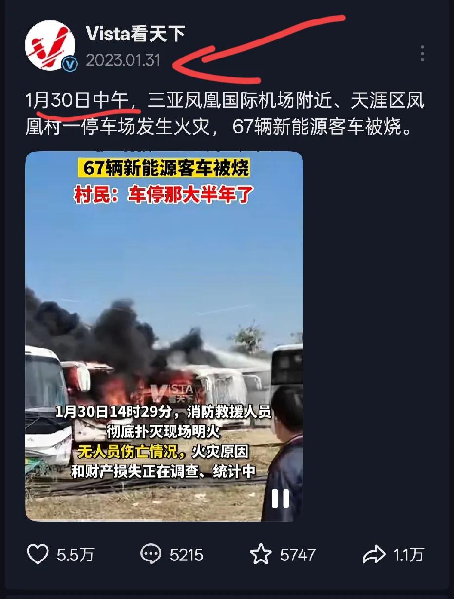 今天刷到新闻,三亚凤凰国际机场的附近停车场好多车子被烧着了,也看到好多人发了视频,火势很猛,这么多车子,损失得多少?还好看到报道说目前未有人员伤亡。[祈祷][祈祷][祈祷] 看到新闻的时候,就去搜了一下,然后就看到了一条2023年的新闻(图3),也是三亚凤凰机场附近的一个停车场,不过应该不是同一个停车场?但是时间好巧合,虽然是3年前了,但是也正好是1月30日!而今天这个,也是这个时间。 不知道是什么原因着火的,人没事就好。[祈祷]尽快找到起火的原因。