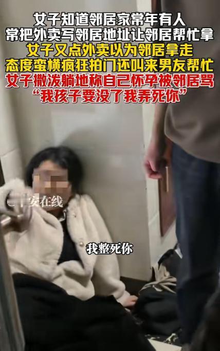 “脸都不要了!”辽宁,一女子经常把外卖地址写成邻居家,邻居多次提醒无效,这天,看到订单显示送达后,女子赶紧出门去取,却发现外卖不见了!女子认定外卖是邻居拿的,跑到门口大声索要,邻居却说自己并没有看到什么外卖。 2025年,辽宁某小区的居民楼,一名年轻的女子正拉着一名男子,拍着自己邻居的门,嘴里还不停喊着让邻居把她的外卖交出来,那副气急败坏的样子,让围观的人都愣住了。 这名女子早就摸清了隔壁邻居的作息,知道邻居家常年都有人在家,从几个月前开始,她点外卖就再也没填过自己的门牌号,反而次次都把邻居家的地址填上去,把别人的家当成了免费的外卖代收点。 最开始邻居看她是个年轻人,想着出门顺手帮着收一下也没什么,每次外卖送到,邻居都会帮忙拿进屋。 之后再敲门喊女子来取,可次数多了,这份好心就成了累赘,外卖员的敲门声不分时段地响起,早饭、下午茶、深夜的宵夜,邻居的正常生活被搅得一团糟。 邻居也曾三番五次跟女子沟通,好言好语提醒她,让她以后点外卖填自己的地址,别再这样麻烦别人,女子每次都嘴上应和着,转头却依旧我行我素,丝毫没有改变的意思,依旧把邻居的善意当成理所当然。 事发当天的中午,正是小区里外卖配送的高峰期,女子照旧窝在家里刷着手机点外卖,手指熟门熟路地在地址栏填了邻居的门牌号。 甚至还特意在备注里写了 “家中有人,可代收”,做完这一切,她就放下手机等着订单送达的提示,完全没考虑过这样的行为会给邻居带来多少困扰。 没过多久,手机屏幕上跳出了外卖已送达的消息,女子慢悠悠地起身出门,走到邻居家门口却没看到外卖的影子,她又低头找了楼道的角落、消防栓旁边,翻来翻去都没找到。 那一刻,她没有丝毫犹豫,第一反应就是邻居故意把她的外卖藏了起来,心里的火气瞬间涌了上来,二话不说就抬手开始使劲拍邻居家的门。 邻居听到急促的敲门声,开门后看到女子怒气冲冲的样子,还没来得及问怎么回事,就被女子劈头盖脸地质问,让她赶紧把藏起来的外卖交出来。 邻居一脸疑惑,如实说自己今天根本没看到什么外卖,也没有帮她代收,可女子根本不听任何解释,态度蛮横到了极点,梗着脖子一口咬定就是邻居拿了她的外卖,还出言指责邻居小气,连一份外卖都要占为己有。 两人在邻居家门口争执起来,女子的声音越来越大,尖锐的喊声在楼道里回荡,引来了更多住户的围观,可她丝毫不在意旁人的目光,反而觉得自己占着理。 看邻居始终坚持没看到外卖,她直接掏出手机给男友打了电话,语气气急败坏地让男友赶紧过来,还添油加醋地说自己的外卖被邻居偷了,自己还被对方欺负了。 没过几分钟,女子的男友就匆匆赶来,他不问前因后果,听了女子的一面之词后,就跟着女子一起站在邻居家门口大声喊话,要求邻居把外卖拿出来,不然这事绝对不算完。 邻居被这两人的无理取闹弄得又气又无奈,只能一遍又一遍地解释,可这对男女根本听不进去,只顾着在门口叫嚣。 邻居实在是受不了了,就说女子欺人太甚,没曾想女子突然做出了让人意想不到的举动。 她猛地捂着肚子往后退了两步,接着一屁股坐在了冰冷的楼道地面上,顺势又躺了下去,开始嚎啕大哭,嘴里大声喊着自己怀孕了,被邻居的话气得肚子疼,孩子都快要保不住了。 一边哭,女子还一边对着邻居放狠话,声音尖利地喊着 “我孩子要是掉了,我整死你”,那副撒泼打滚的样子,让围观的住户都看傻了眼。 邻居被她这番话气得脸色发白,忍不住回怼了她几句,说她凭空捏造、血口喷人,自己根本没碰她的外卖,也没说过什么重话,是她自己找上门来无端闹事。 女子见邻居还敢回嘴,哭得更凶了,躺在地上蹬着腿,嘴里的威胁话也越说越难听,她男友赶紧上前想把她扶起来,可她死活不起来。 邻居忍无可忍直言自己要报警了,这对撒泼的男女一听“报警”两字,赶紧灰溜溜的走了,走之前还不忘放狠话。 邻居觉得这事实在是太奇葩了,于是将其曝光到了网上,网友们在评论区里对这对撒泼的男女那是口诛笔伐,不少人都说这对男女没有一丁点的素质。 像这样的事件并不是个例,点外卖的话商家是可以看到地址的,有些人点外卖为了薅羊毛会故意将地址填到隔壁,这样当他们给商家差评或者给骑手差评的时候,对面找上门也是去的隔壁,给他们带来不了任何的损失。 邻里之间抬头不见低头见,相处靠的本就是互相尊重,别人的好心和包容从来都不是理所当然,把别人的退让当软柿子捏,最后丢的,只能是自己的脸面。 对于这件事,您有什么想说的吗?欢迎评论区留言讨论。 信源:中安在线2025-12-06——《女子知道邻居家常年有人,常把外卖写邻居地址让邻居帮忙拿,女子又点外卖以为邻居拿走……》