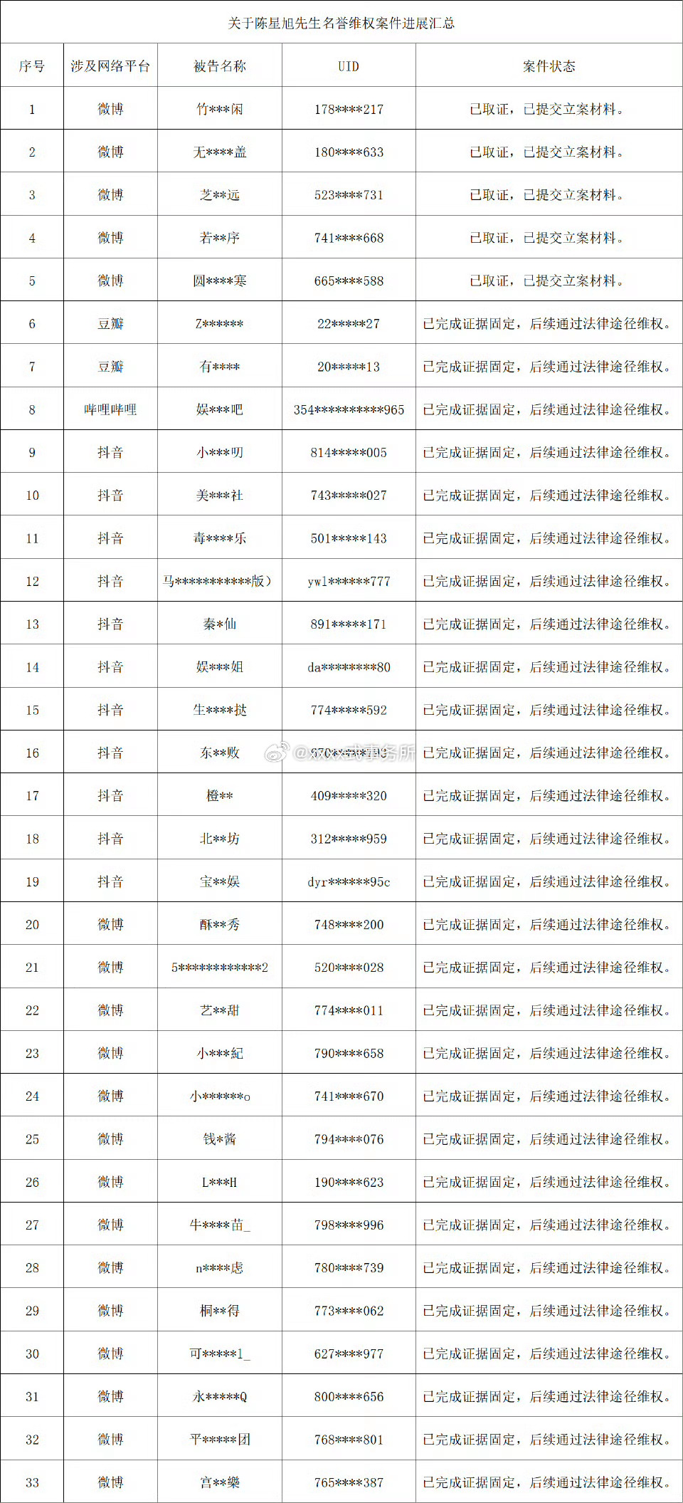 陈星旭全平台告嘿支持维权
