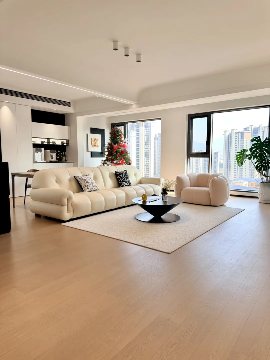 我家🏠建筑面积140平,套内118平 硬装花费15w,软装花费10w+ 拼尽全力装成自己想要的样子~ 客厅是开间7米的大横厅 打通一间房合并成客厅 全屋木地板通铺,全屋大白墙 显大又通透! 👇附上我家的装修清单: 封阳台:11735 水电材料+工费:9500 防水:1000 砸墙铲顶:550 (回收旧门抵掉1300) 水泥沙杂费:5000 瓷砖及材料+泥工工费:16500 木工工费+材料:8500 石材:2200 水槽:459 油漆+工费:9500 所有的门:10500 地板:23726 踢脚线:947(自己安装所以没有工费) 美缝:1500 柜子:43000 集成吊顶:2500 开荒:800 淋浴房:3200 空调出风口:350 燃气相关费用:750 全屋灯具:6300 开关插座:950 洗衣池:2400 👇客厅软装 沙发:7700 单人沙发:2751 餐桌椅:3800 地毯:1500 茶几:1900 大长桌:1350 窗帘:2300 👇主卧软装 床:2780 床垫:1910 窗帘(主卧+儿童房+客卧):1700 飘窗垫:300 👇儿童房软装 床+床垫:3035 窗帘在主卧清单包含了 👇客卧软装 床+床垫:4700 窗帘在主卧清单包含了 👇卫生间 马桶:3500 花洒:2000 浴室柜:1900 👇电器清单 洗碗机:4700 热水器:1080 风管机:11500 空调挂机:8400 烟机燃气灶:3200 冰箱:5700 投影+幕布:6500 洗衣机+烘干机:4349