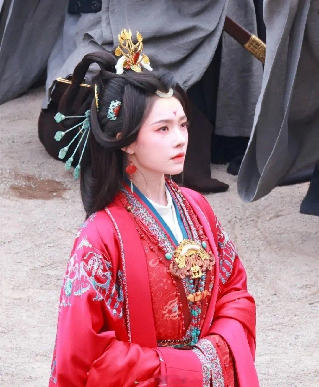 林允这套外衫有点拉,设计了一个图案就复制粘贴好几排偏偏又不铺满。头发和现在普通人约拍战国风的假发有得一拼