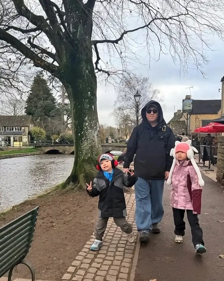 谢依霖全家英国度假,儿女长得可爱都像她,公婆出镜都是慈眉善目!