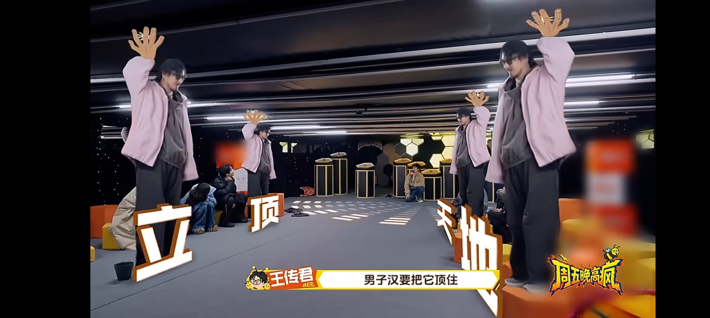 王传君天塌下来有我顶着 天塌下来有高个子顶着具象化了,天花板降落,王传君站起来说“我帮你们顶住这个东西,男子汉把他顶住”,好可靠~周五晚高疯