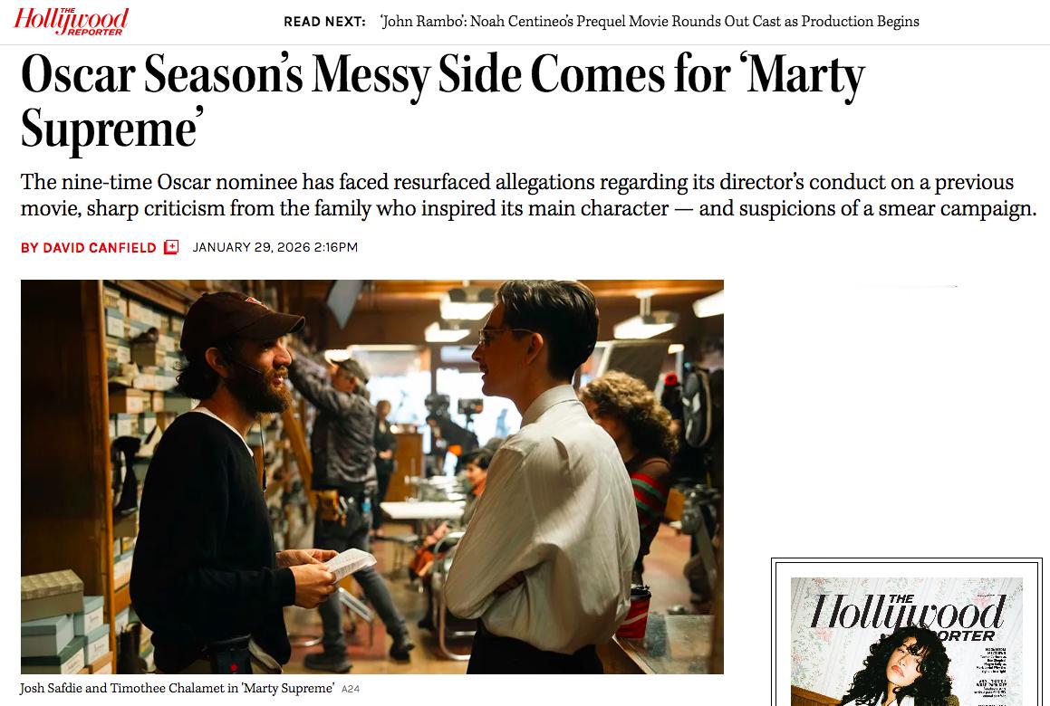 获得9项奥斯卡提名的《至尊马蒂》目前摊上了一堆事,包括导演先前一部电影的丑陋片场行为被曝光,电影主人公原型家属对主创的批评,以及潜在的颁奖季抹黑大战。每个料都很有份量,让人好奇是否会左右颁奖季的形势。