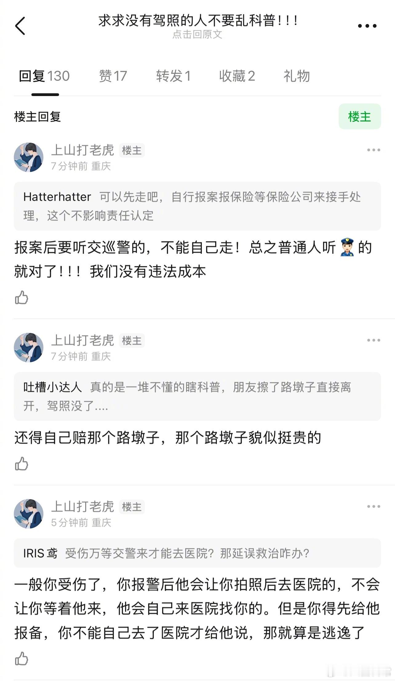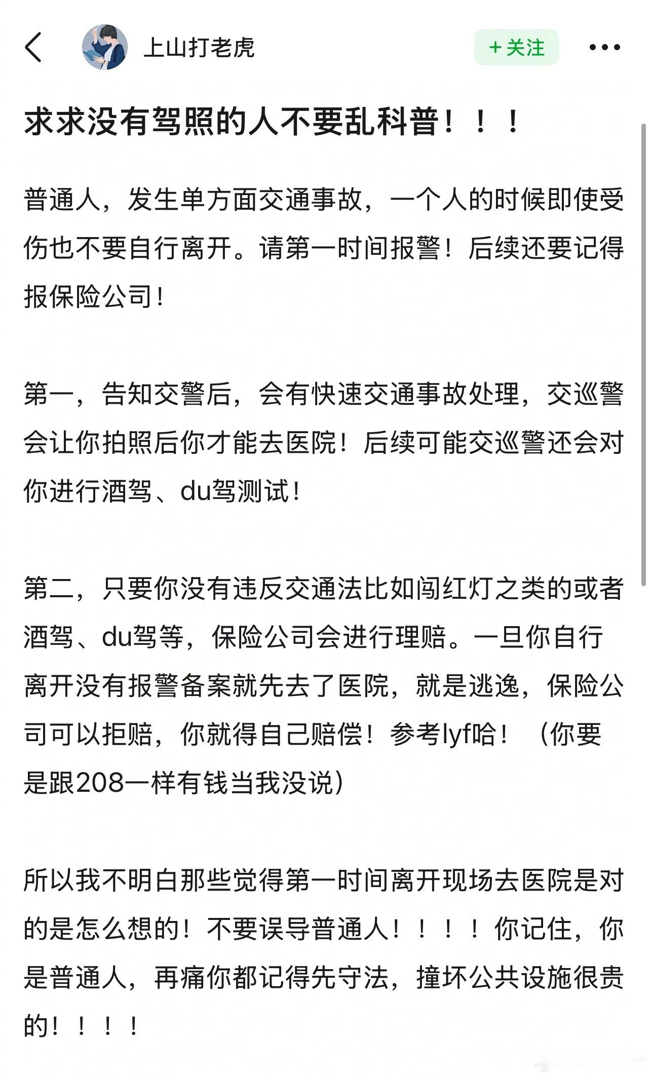 这个关于普通人发生单方面交通事故要如何处理的帖子写得对吗?