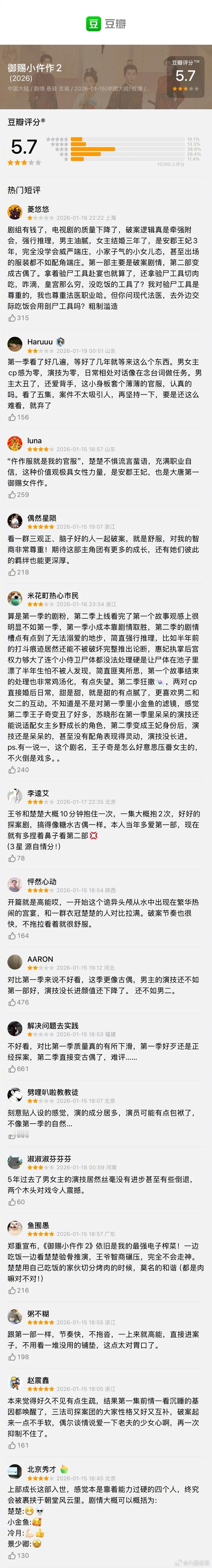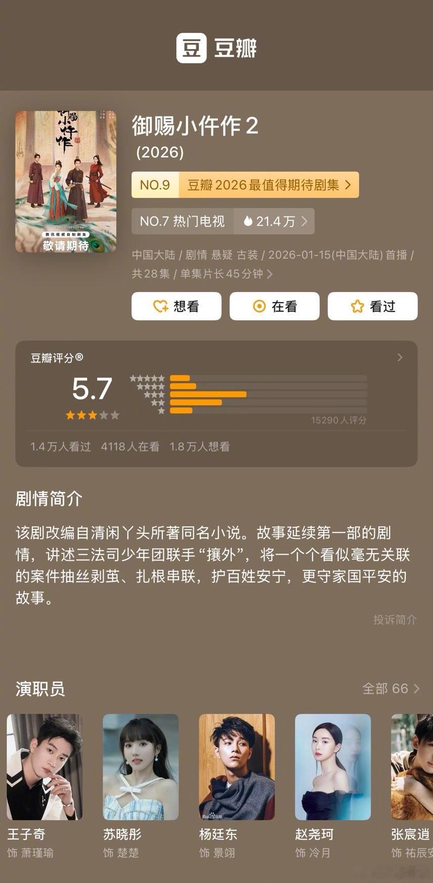 王子奇、苏晓彤《御赐小仵作2》豆瓣开分5.7分