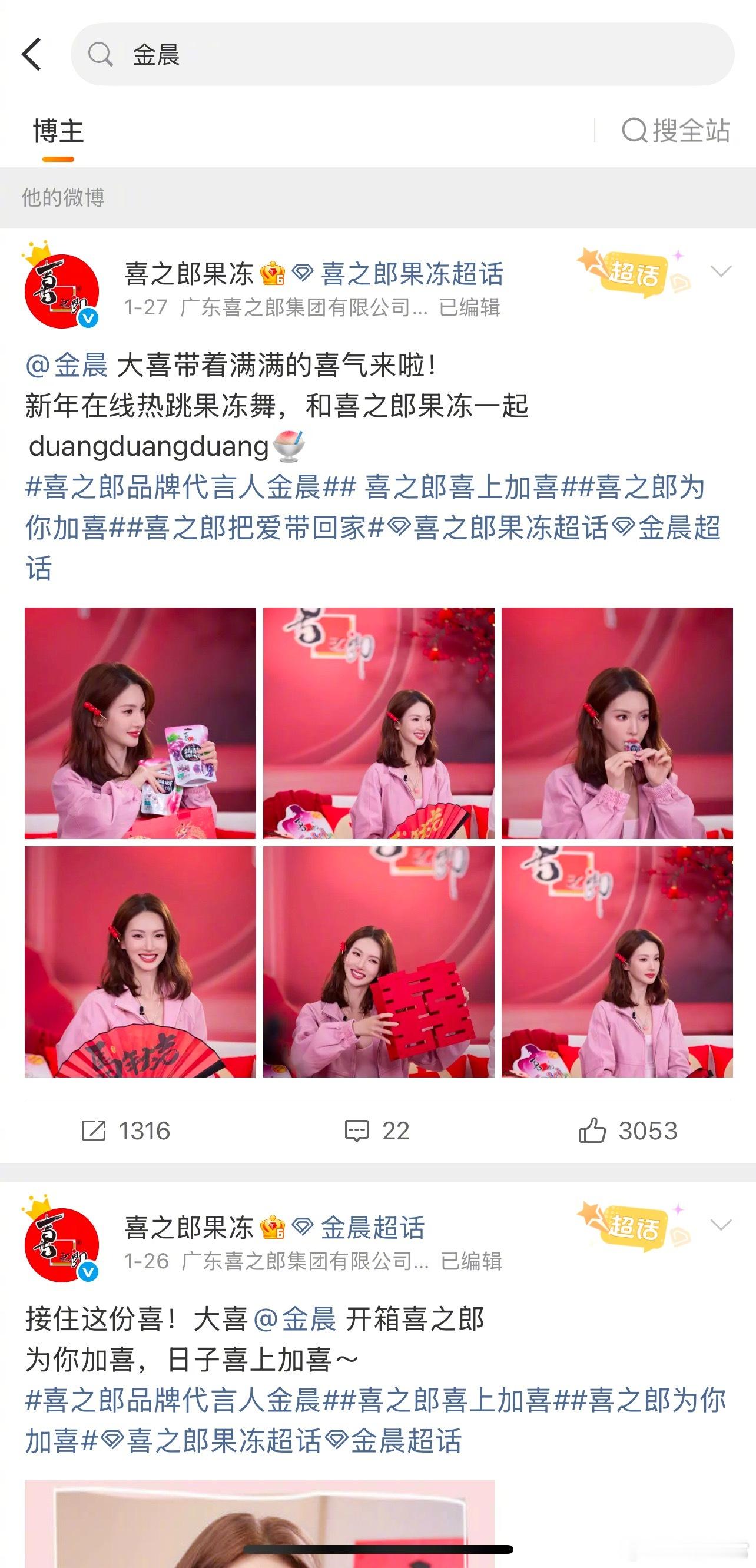 喜之郎果冻把金晨代言的相关微博恢复了喜之郎恢复金晨代言内容