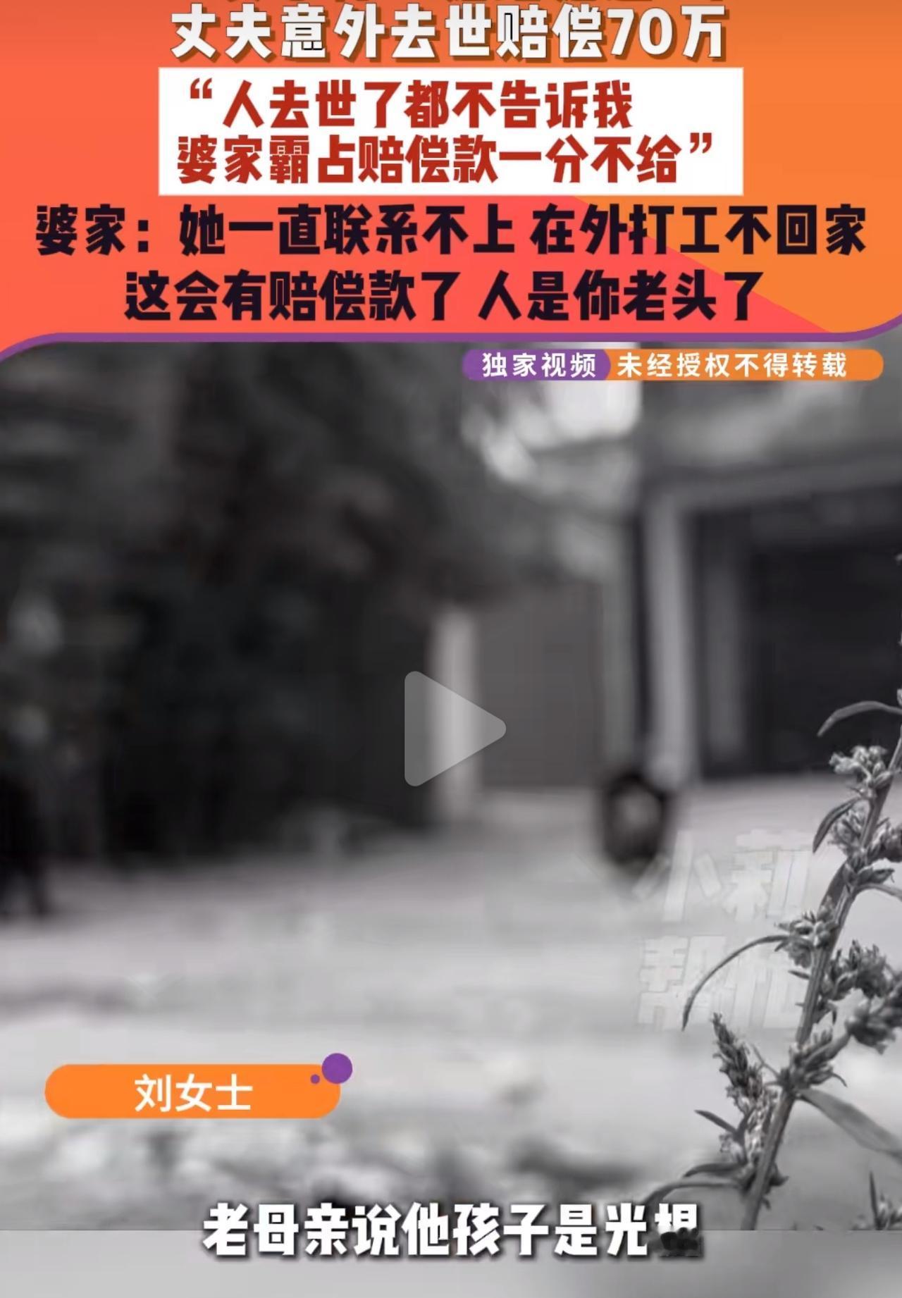 刘女士和丈夫2019年领的证,婚后俩人异地打工过日子。2025年11月,丈夫在郑州工地突发心梗没了,婆家知道后压根没告诉刘女士,还偷偷把遗体火化了。刘女士联系不上丈夫,最后还是从别人口中得知的噩耗,当时又懵又痛,怎么也想不到婆家能做出这么绝情的事。 更寒心的还在后面,婆家居然伪造材料,跟相关方说丈夫是单身,把70万赔偿金全转到了小姑子的账户里,刘女士作为合法妻子,从头到尾被蒙在鼓里。婆家说刘女士婚后不回家,还拉黑了丈夫,没尽到妻子的本分。可刘女士拿着结婚证,她觉得自己是正经配偶,别说分赔偿金,就连丈夫的死讯、遗体处置,她都该有知情权。 两边各说各的理,民警出面调解也没谈拢,刘女士只能收拾证据准备起诉。明眼人都知道,按法律规定,工亡赔偿金就算不是遗产,也该配偶、父母这些第一顺位的人分,小姑子根本没资格领,婆家这做法摆明了涉嫌欺诈侵权。只是夫妻俩人异地相处的那些矛盾,又让这事多了些扯不清的情理纠葛。 说到底,这70万赔偿金就是面照妖镜,把亲情里的利益算计照得明明白白。人都没了,就算夫妻之间有隔阂,婆家隐瞒死讯、冒领赔偿的做法,也实在突破了人伦的底线。法律终究会有公断,这笔钱该怎么分,总会有个说法的。丈夫去世妻子不知情婆家领走70万 如何看待公婆霸占儿媳死亡赔偿款 冒领 丈夫工地上身亡,赔偿金应该归谁?
