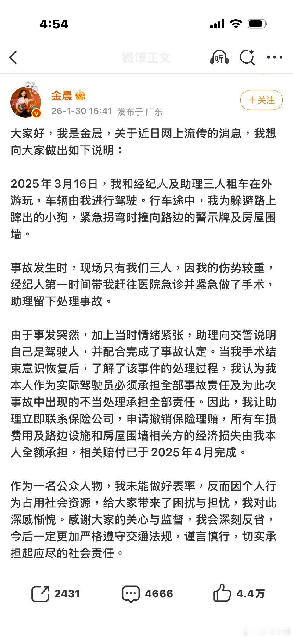 警方通报金晨事件金晨道歉大家觉得金晨受到此事事件影响吗?