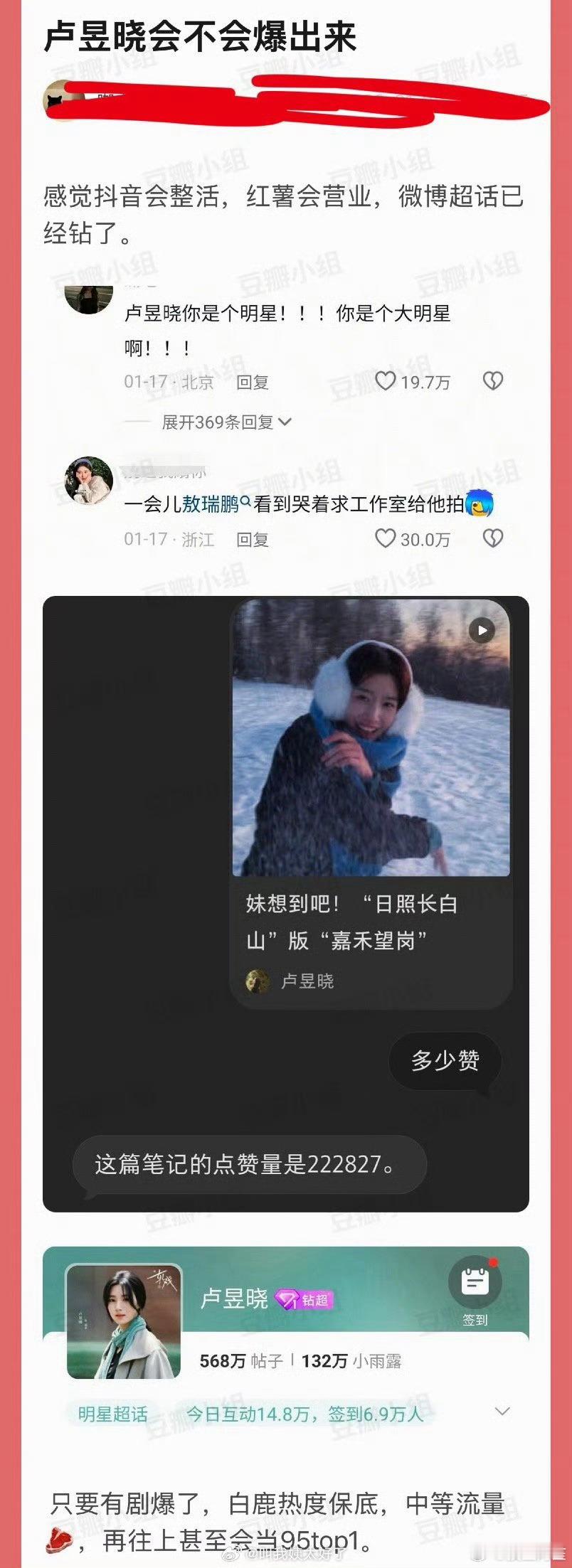 卢昱晓肯定会爆出来的,她身上有一种活人气息和向上的力量,而且也有动一动就被黑的黑红体质,早晚能出头